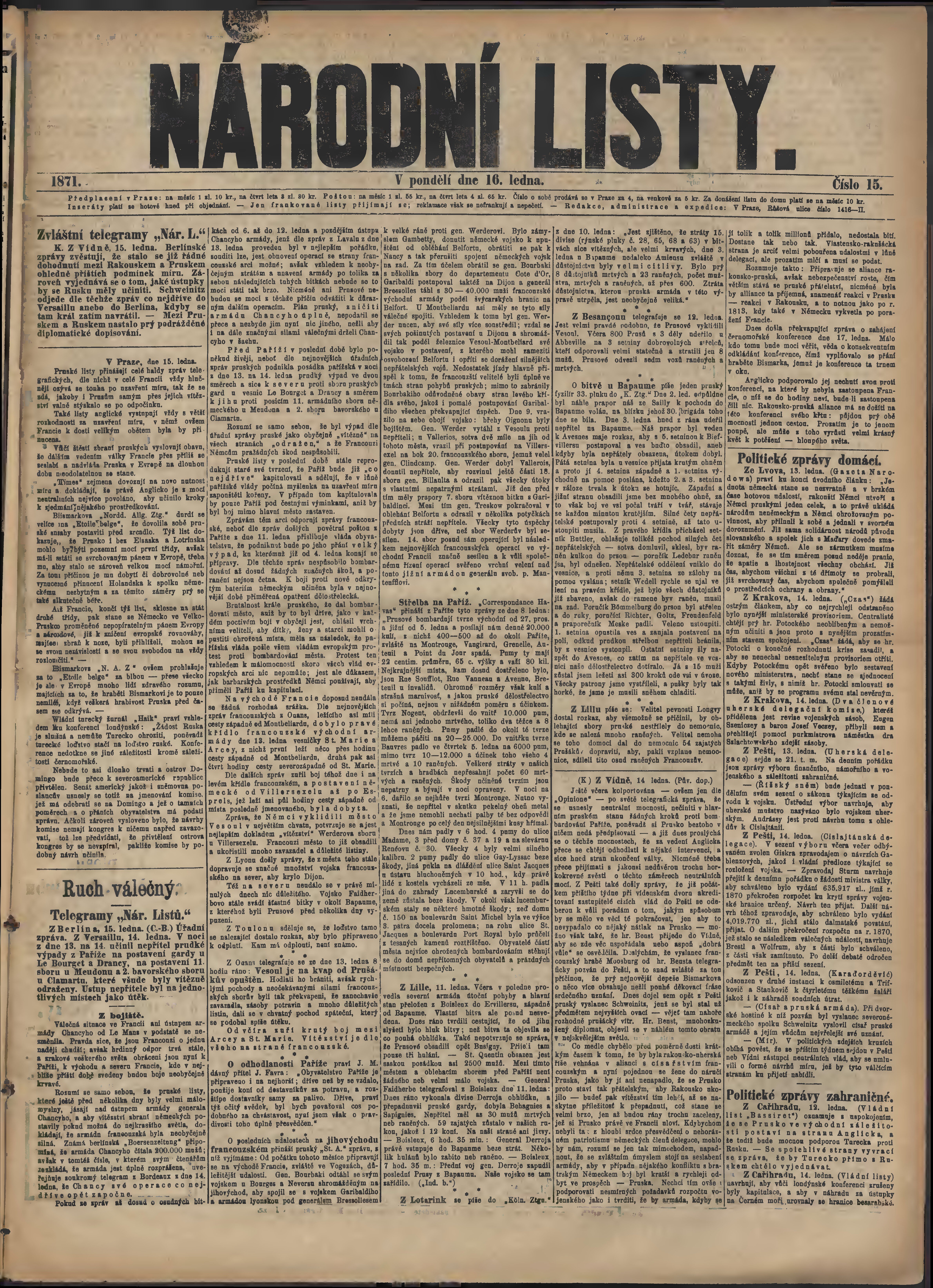 * Datum vydání výtisku: 16.1.1871 Číslo výtisku: 15