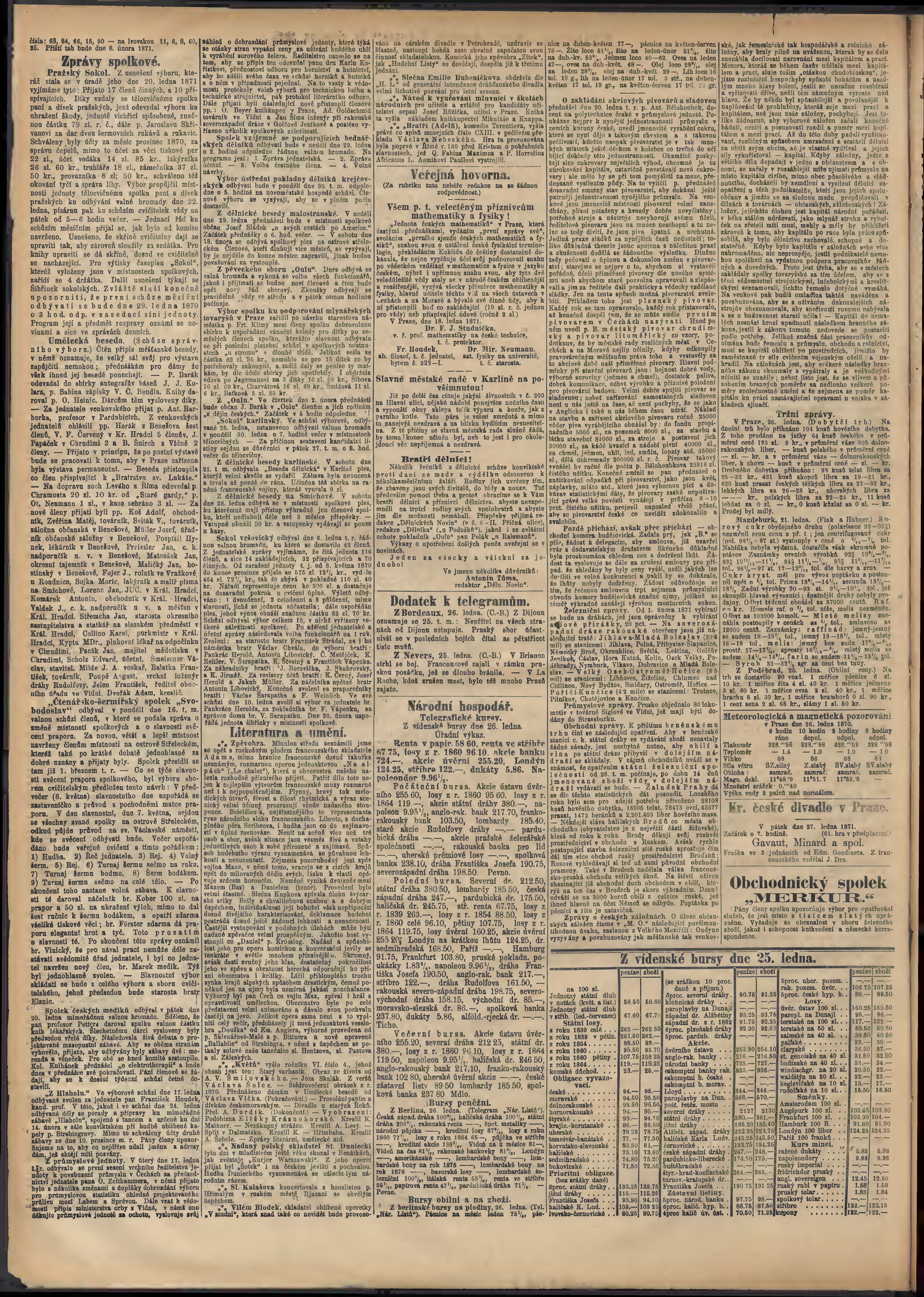 * Datum vydání výtisku: 27.1.1871 Číslo výtisku: 26