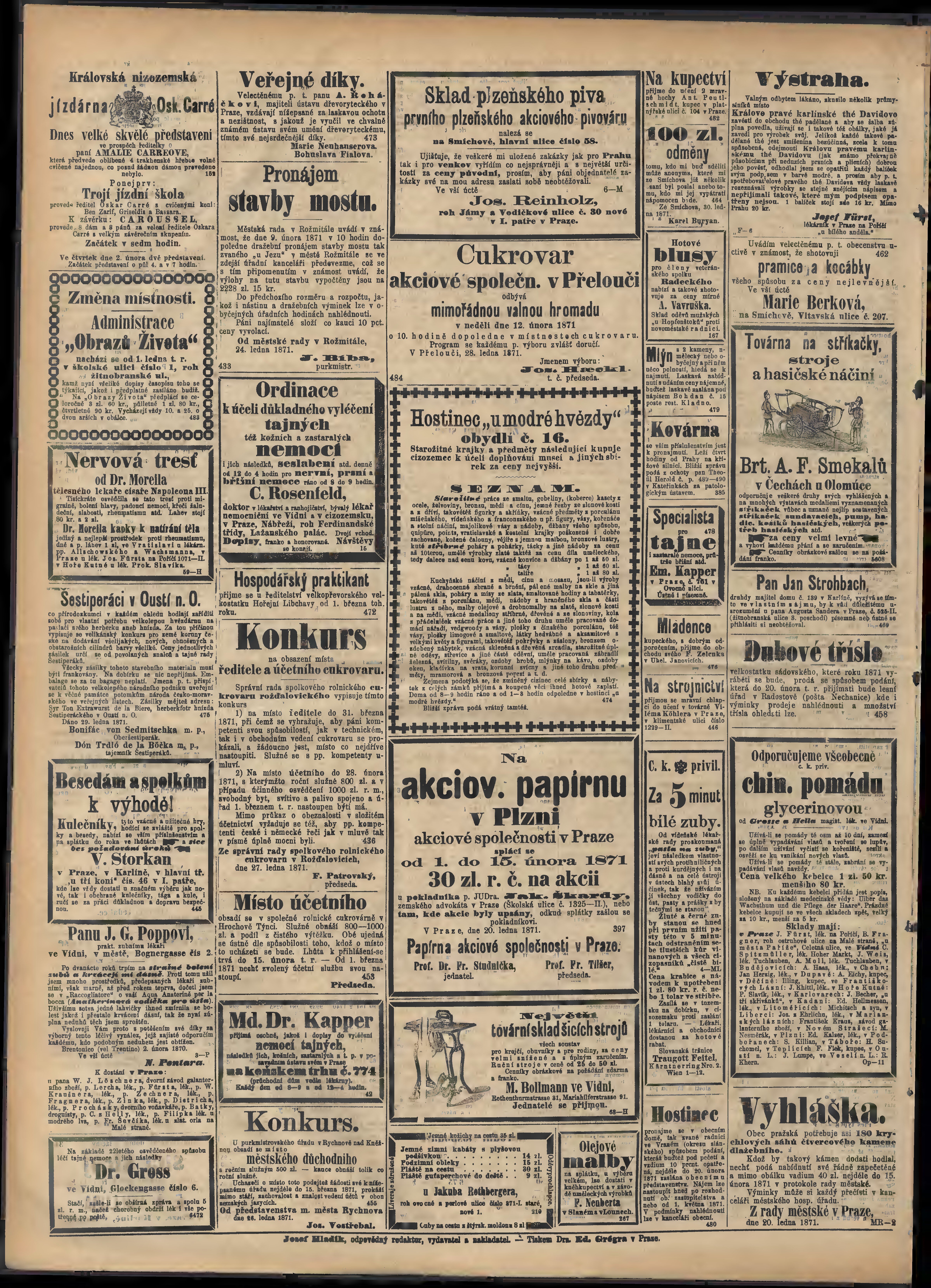 * Datum vydání výtisku: 1.2.1871 Číslo výtisku: 31