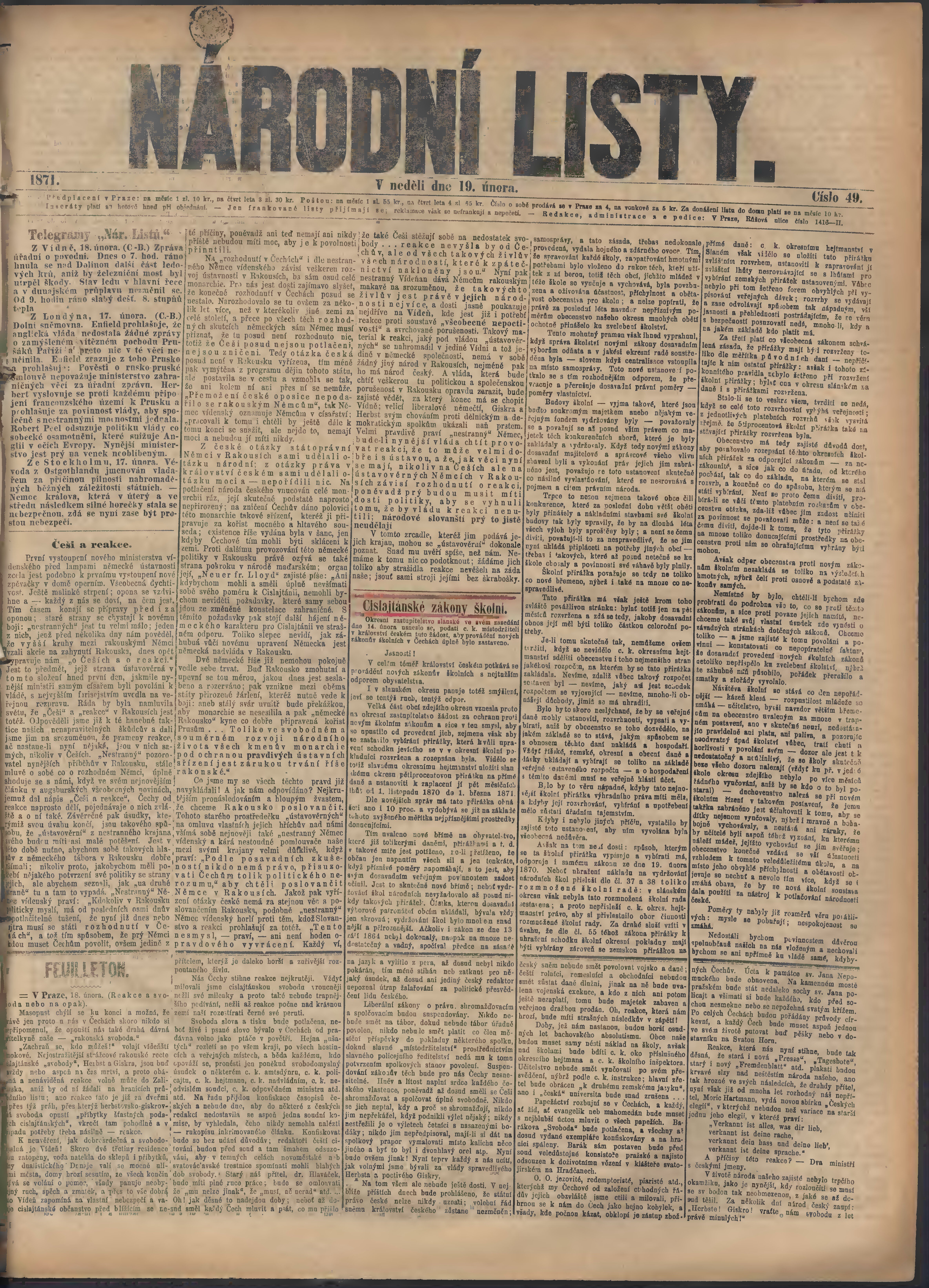 * Datum vydání výtisku: 19.2.1871 Číslo výtisku: 49