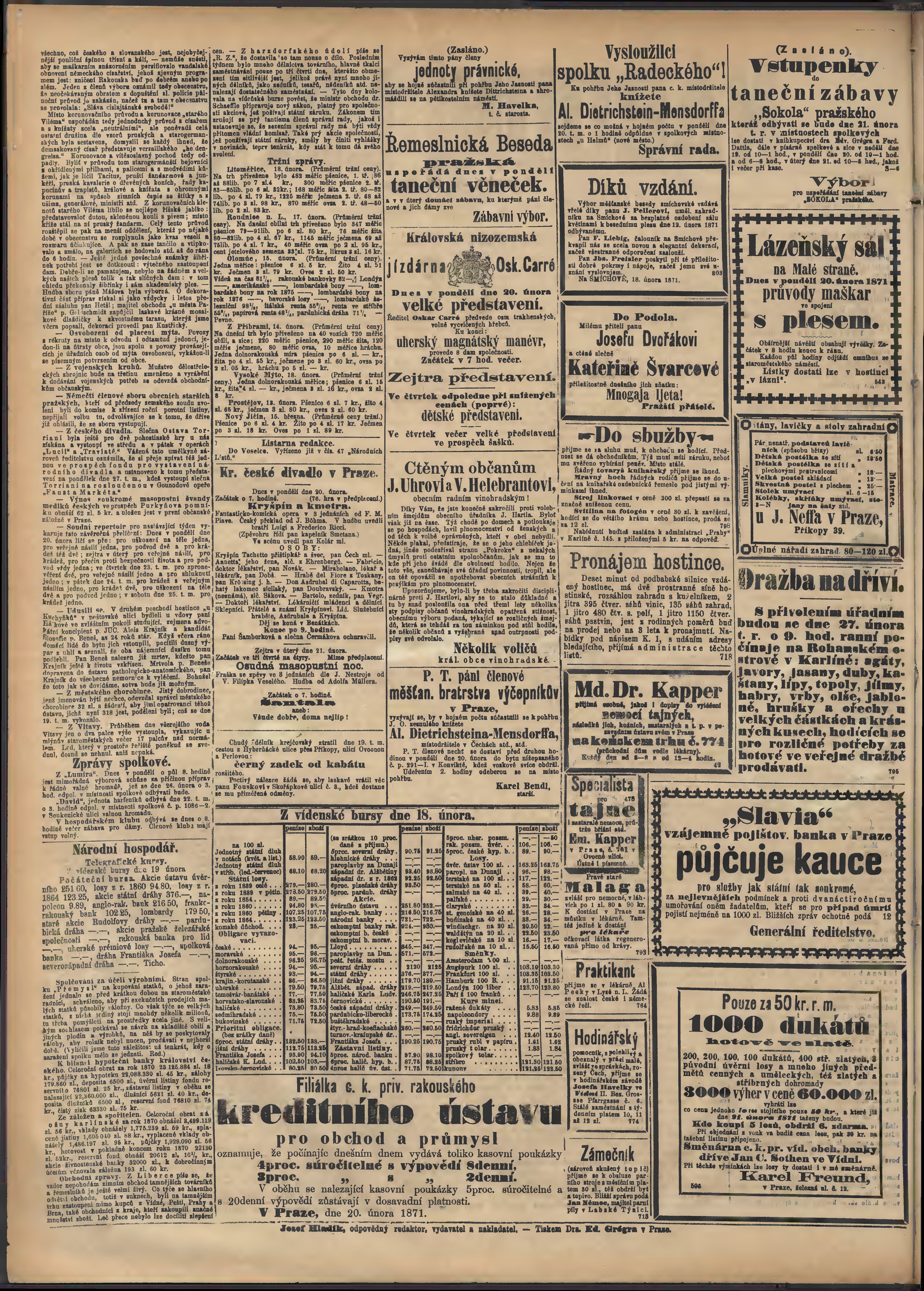 * Datum vydání výtisku: 20.2.1871 Číslo výtisku: 50