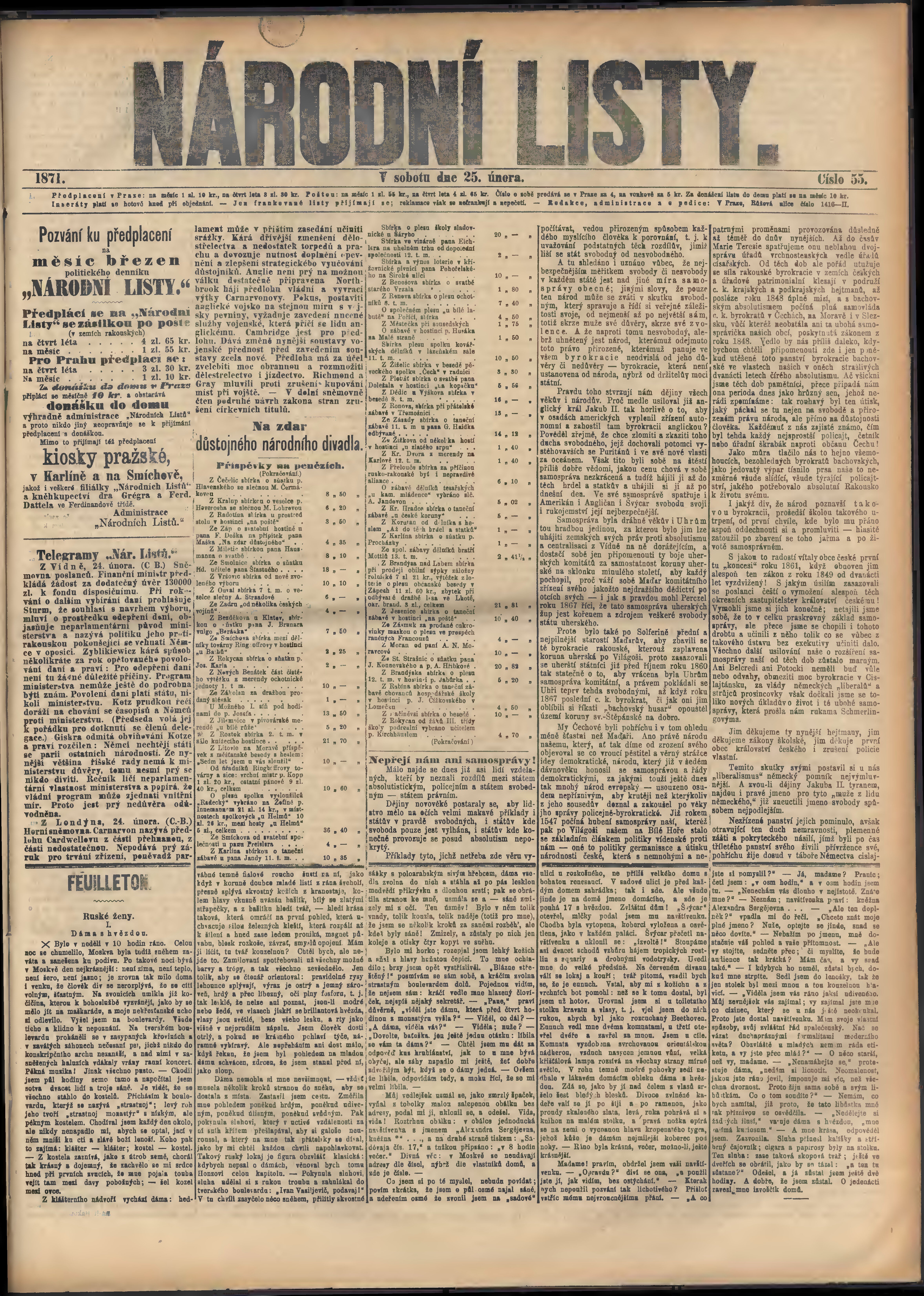 * Datum vydání výtisku: 25.2.1871 Číslo výtisku: 55