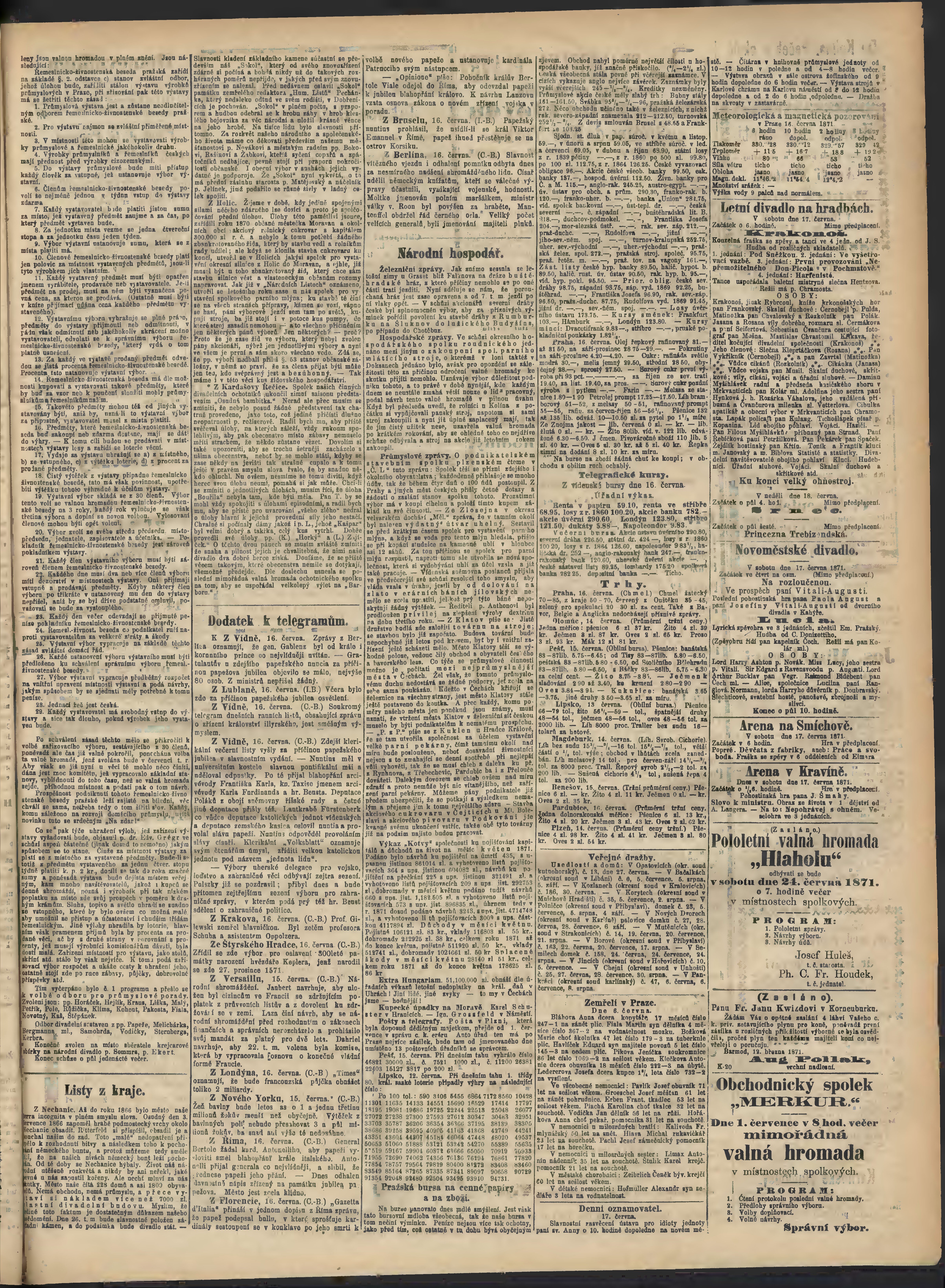 * Datum vydání výtisku: 17.6.1871 Číslo výtisku: 163