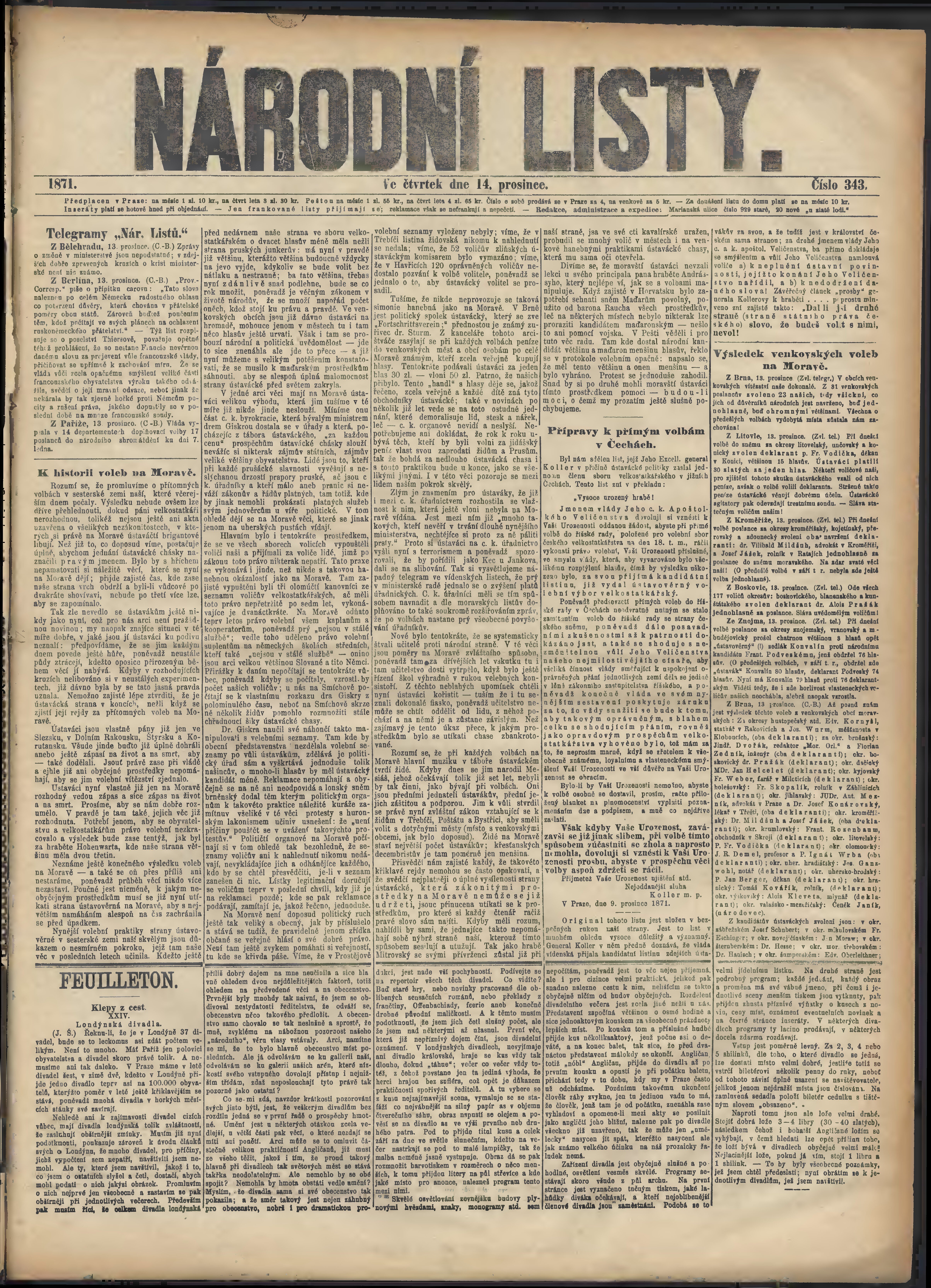 * Datum vydání výtisku: 14.12.1871 Číslo výtisku: 343