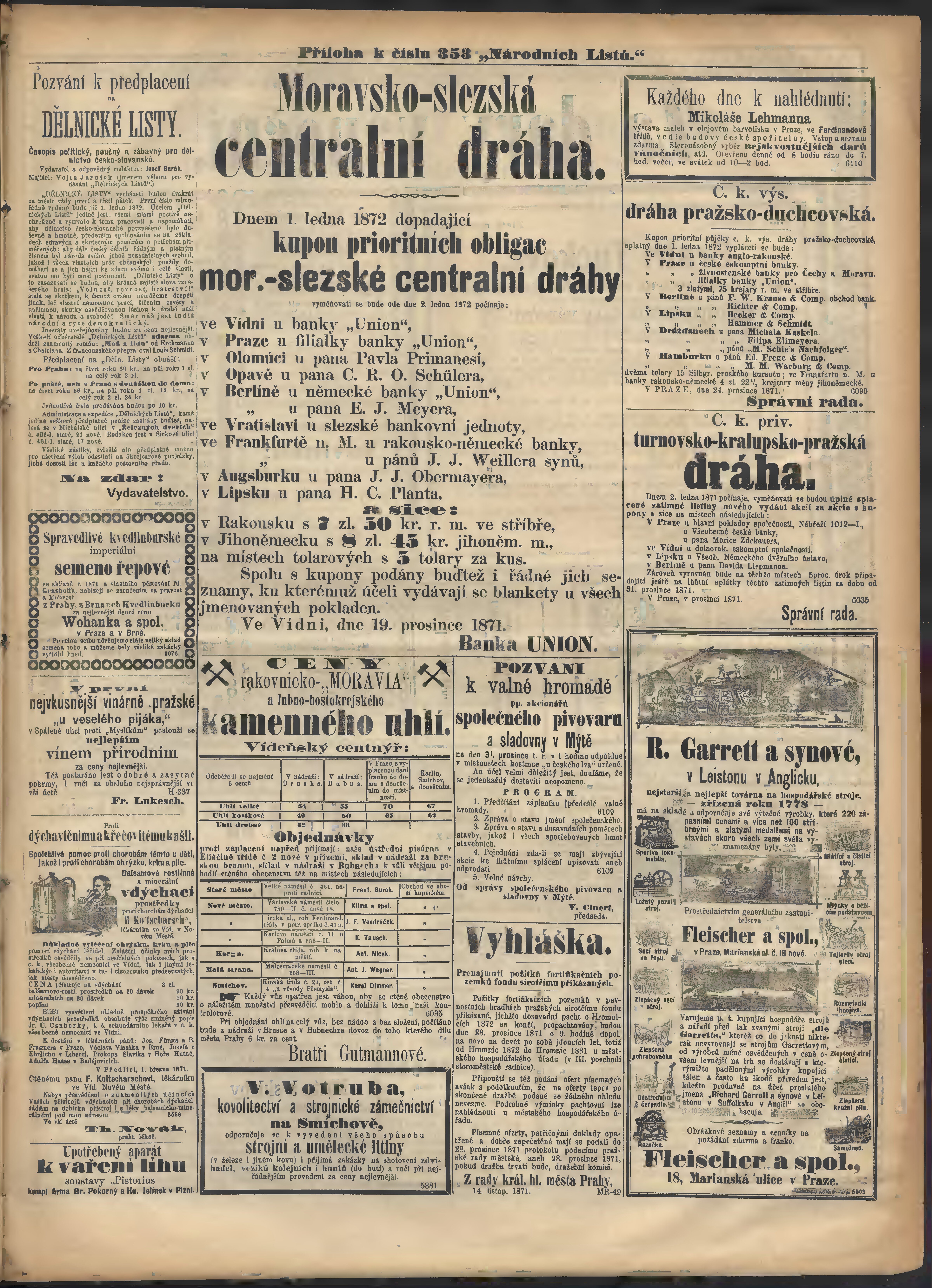 * Datum vydání výtisku: 24.12.1871 Číslo výtisku: 353