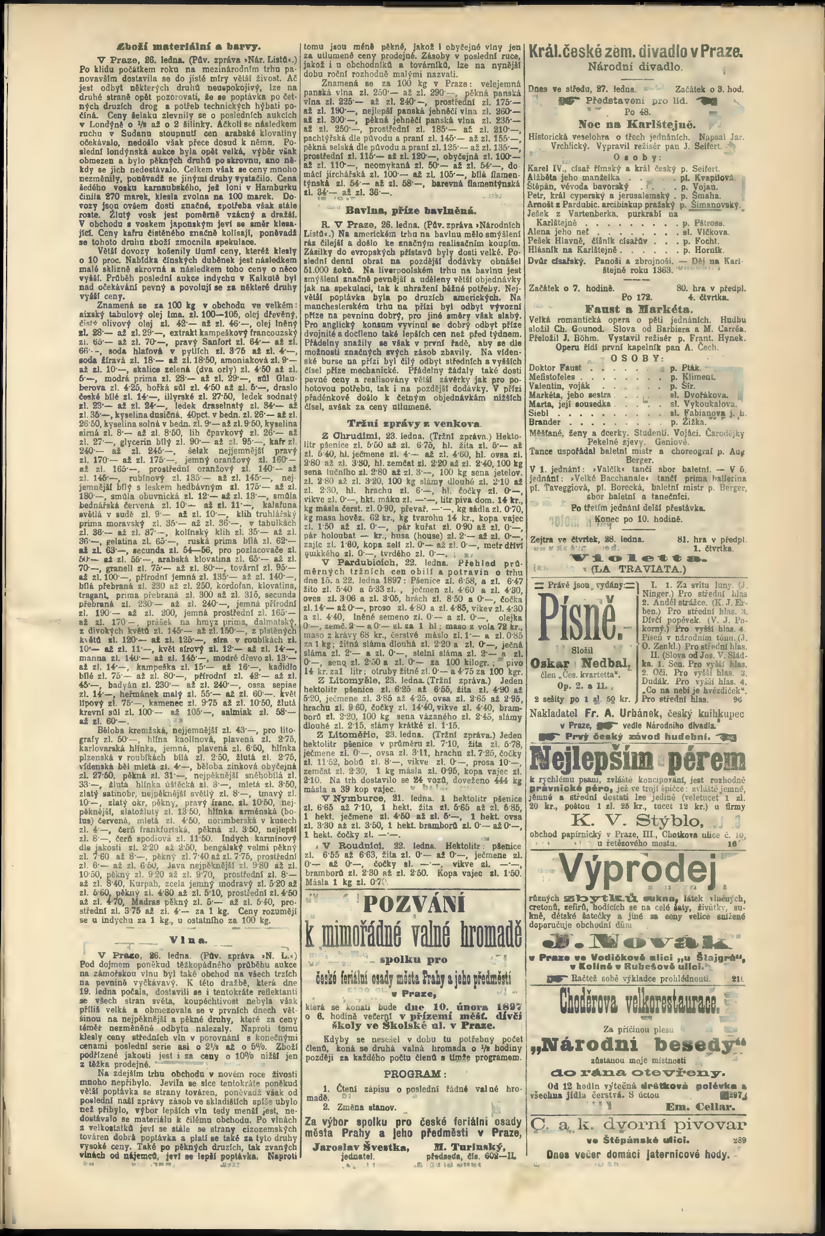 * Datum vydání výtisku: 27.1.1897 Číslo výtisku: 27 Poznámky k výtisku: odpolední vydání;
