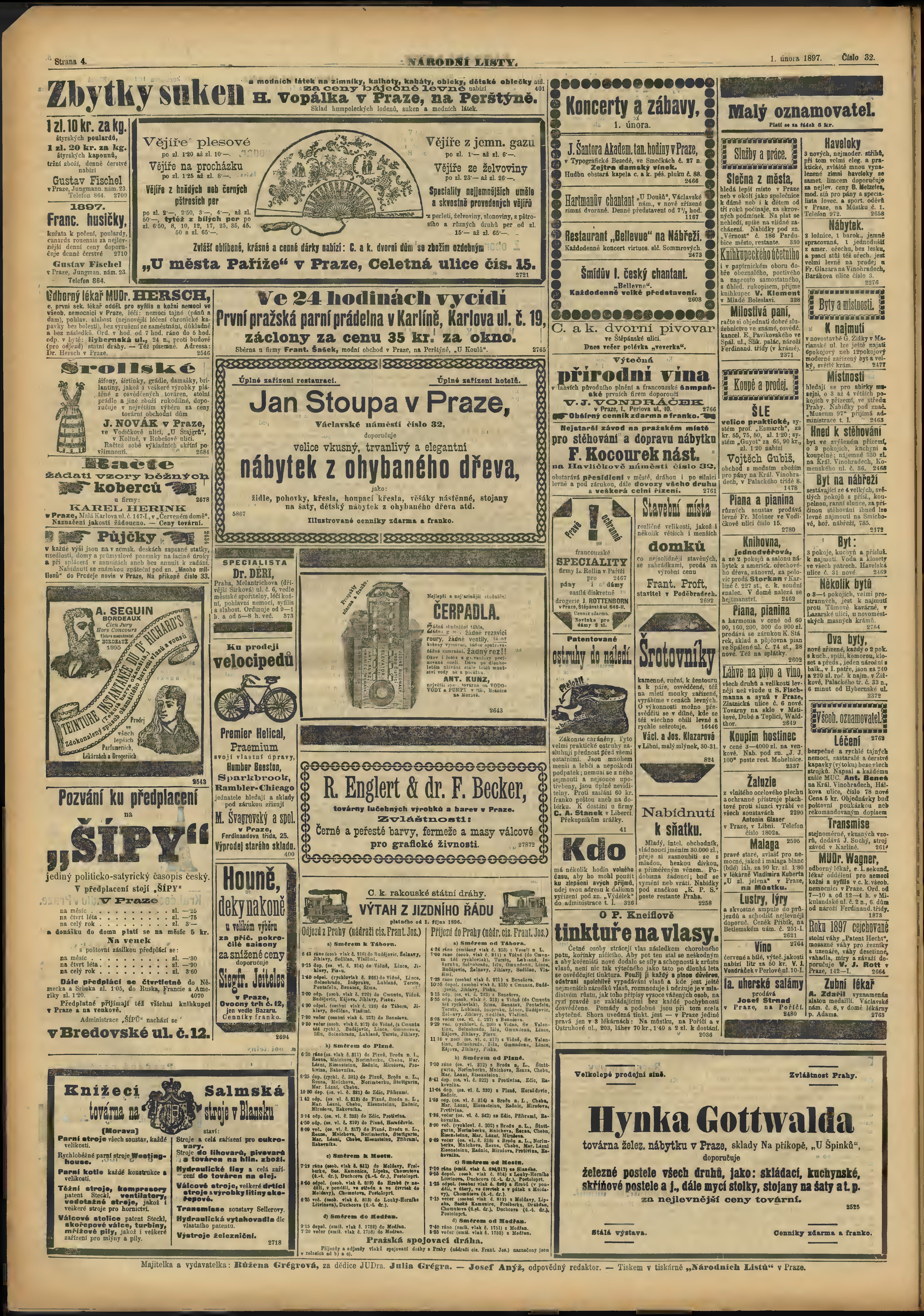 * Datum vydání výtisku: 1.2.1897 Číslo výtisku: 32
