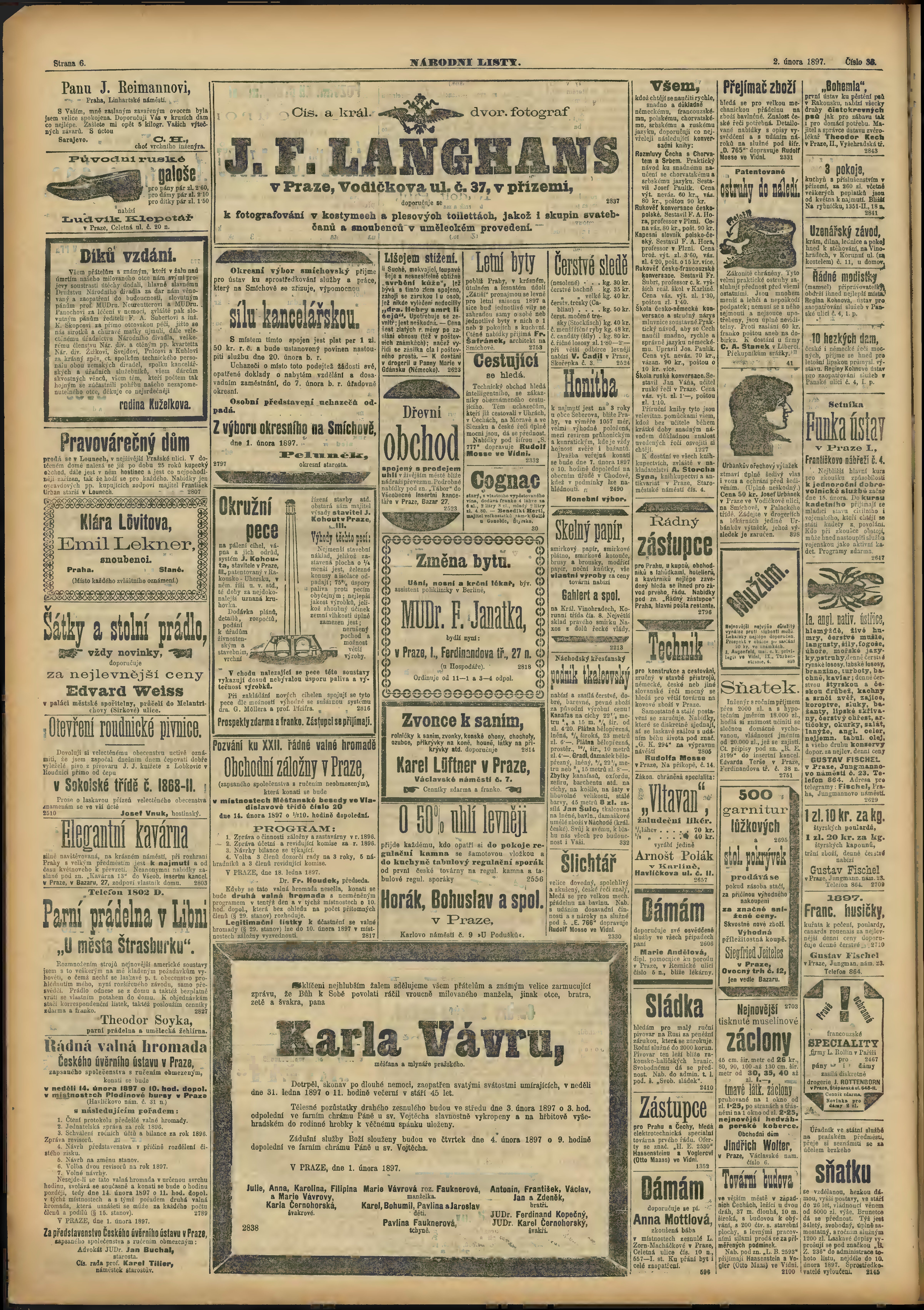 * Datum vydání výtisku: 2.2.1897 Číslo výtisku: 33