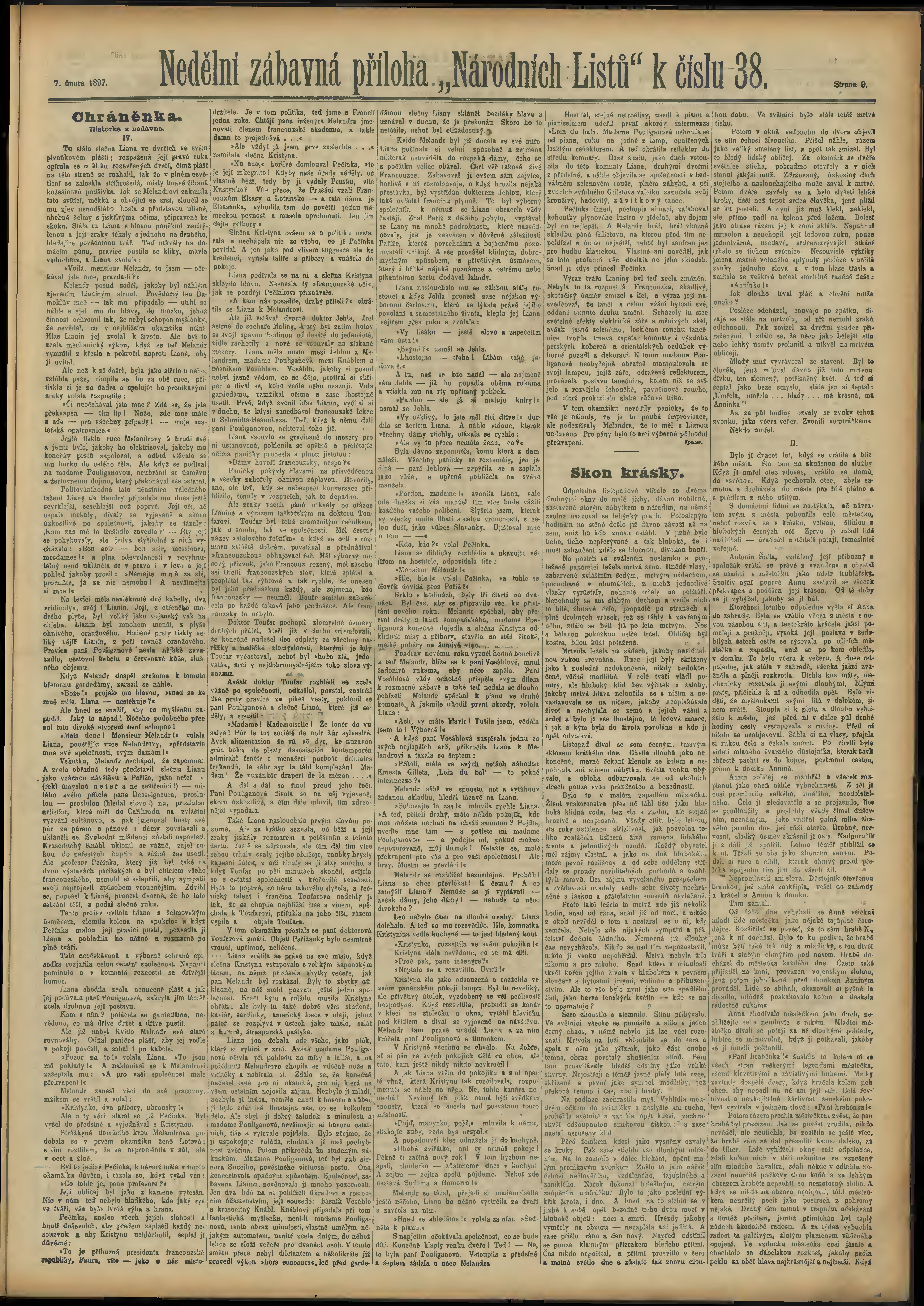 * Datum vydání výtisku: 7.2.1897 Číslo výtisku: 38