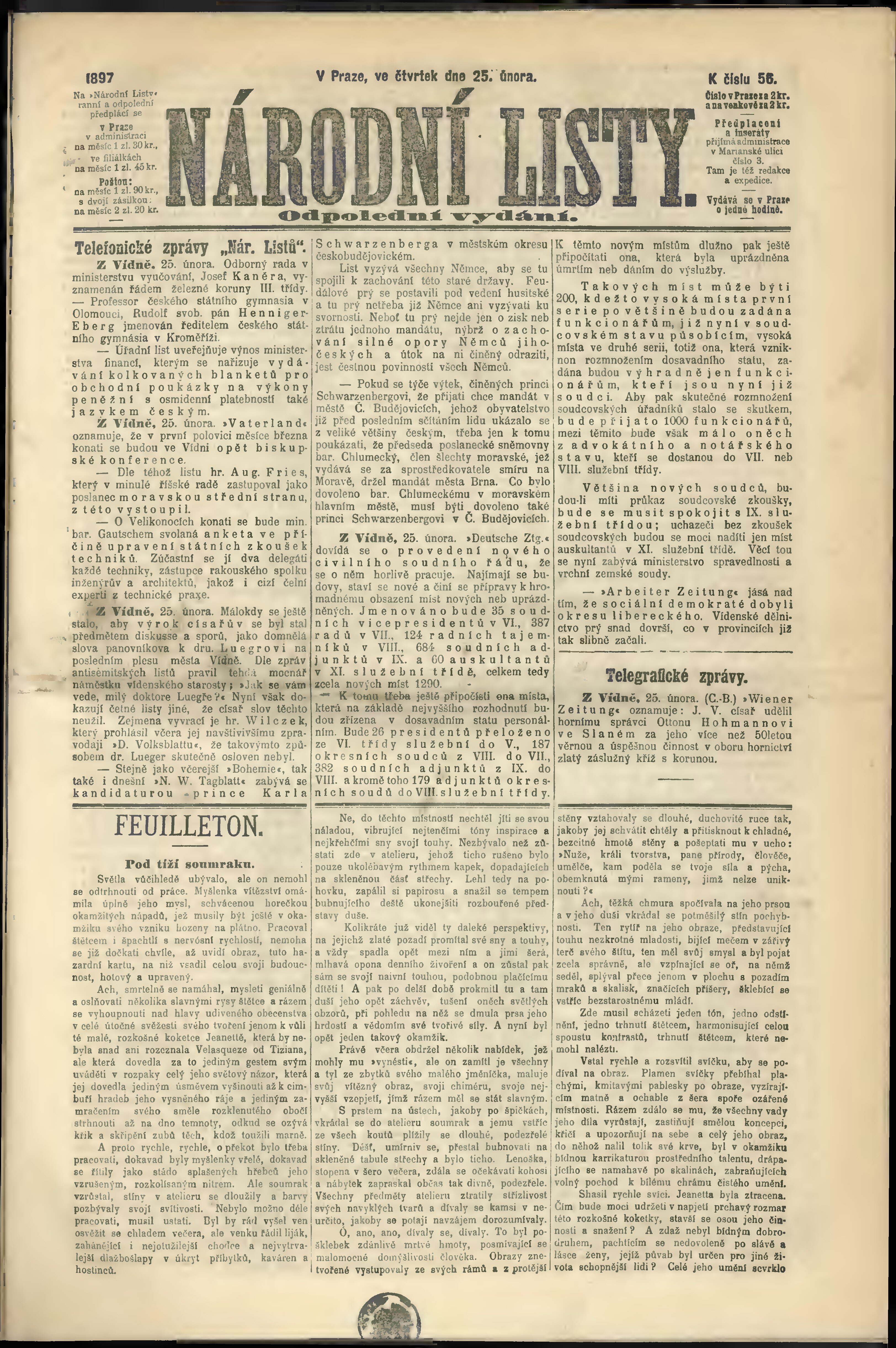 * Datum vydání výtisku: 25.2.1897 Číslo výtisku: 56 Poznámky k výtisku: odpolední vydání;