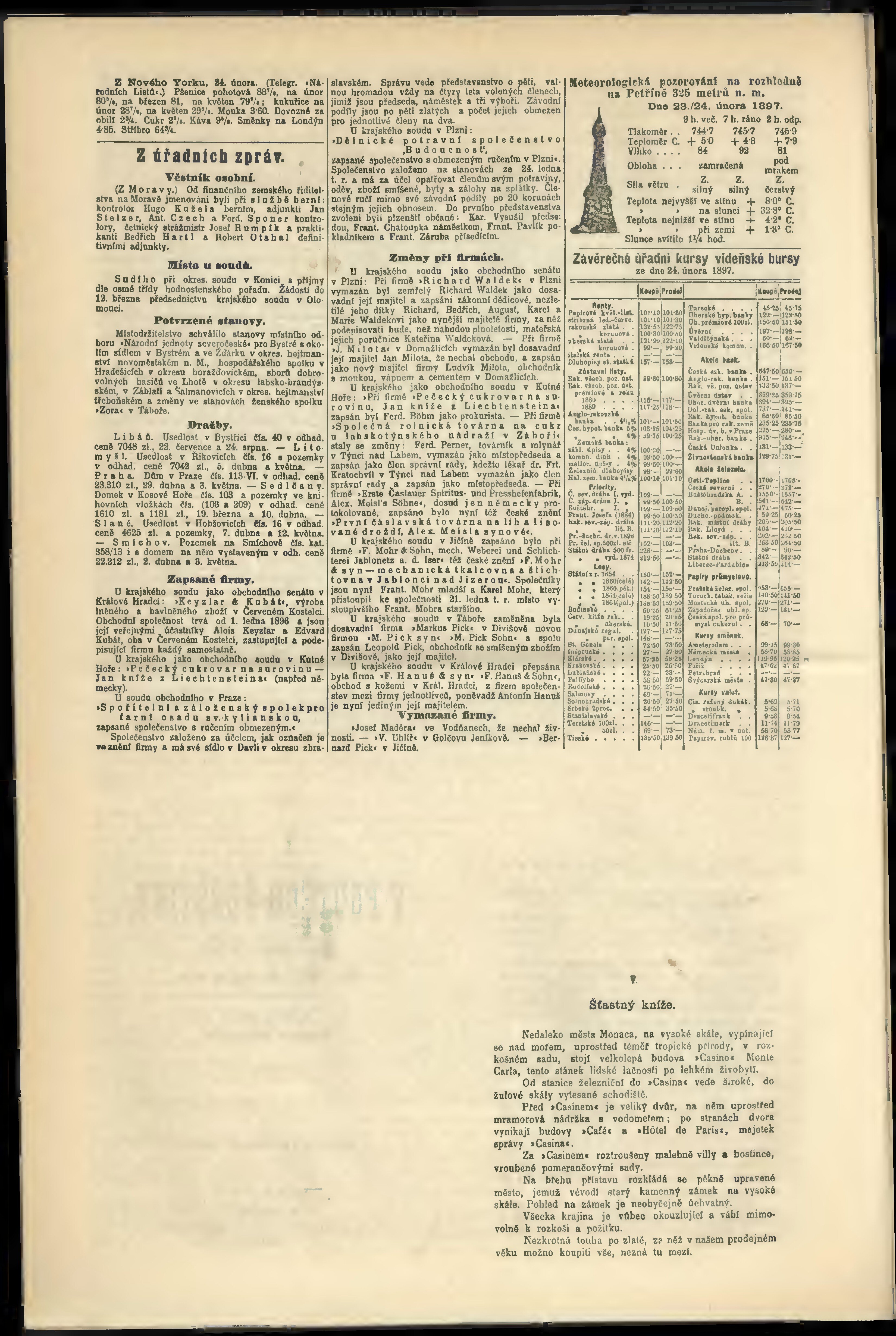 * Datum vydání výtisku: 25.2.1897 Číslo výtisku: 56 Poznámky k výtisku: odpolední vydání;