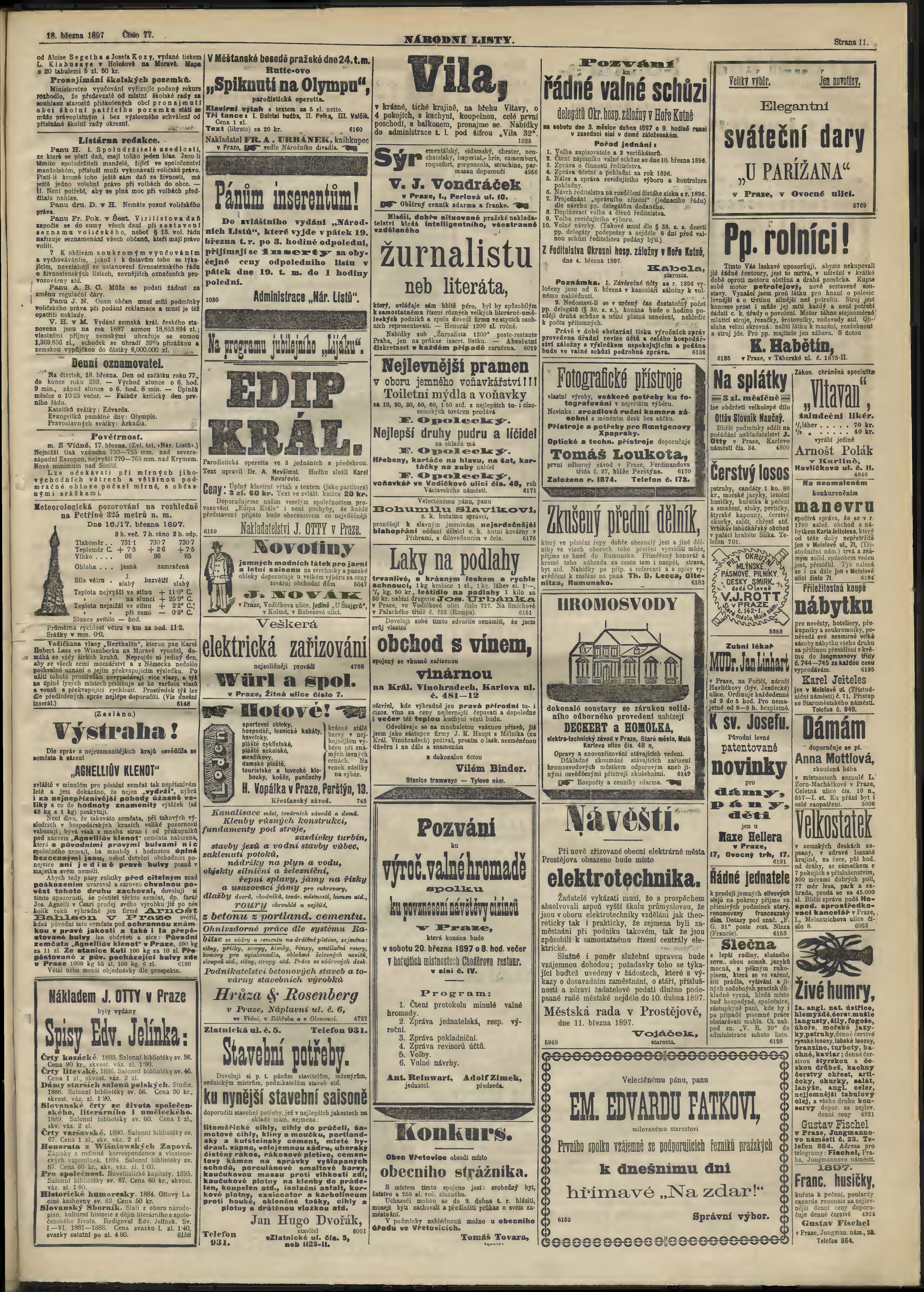 * Datum vydání výtisku: 18.3.1897 Číslo výtisku: 77