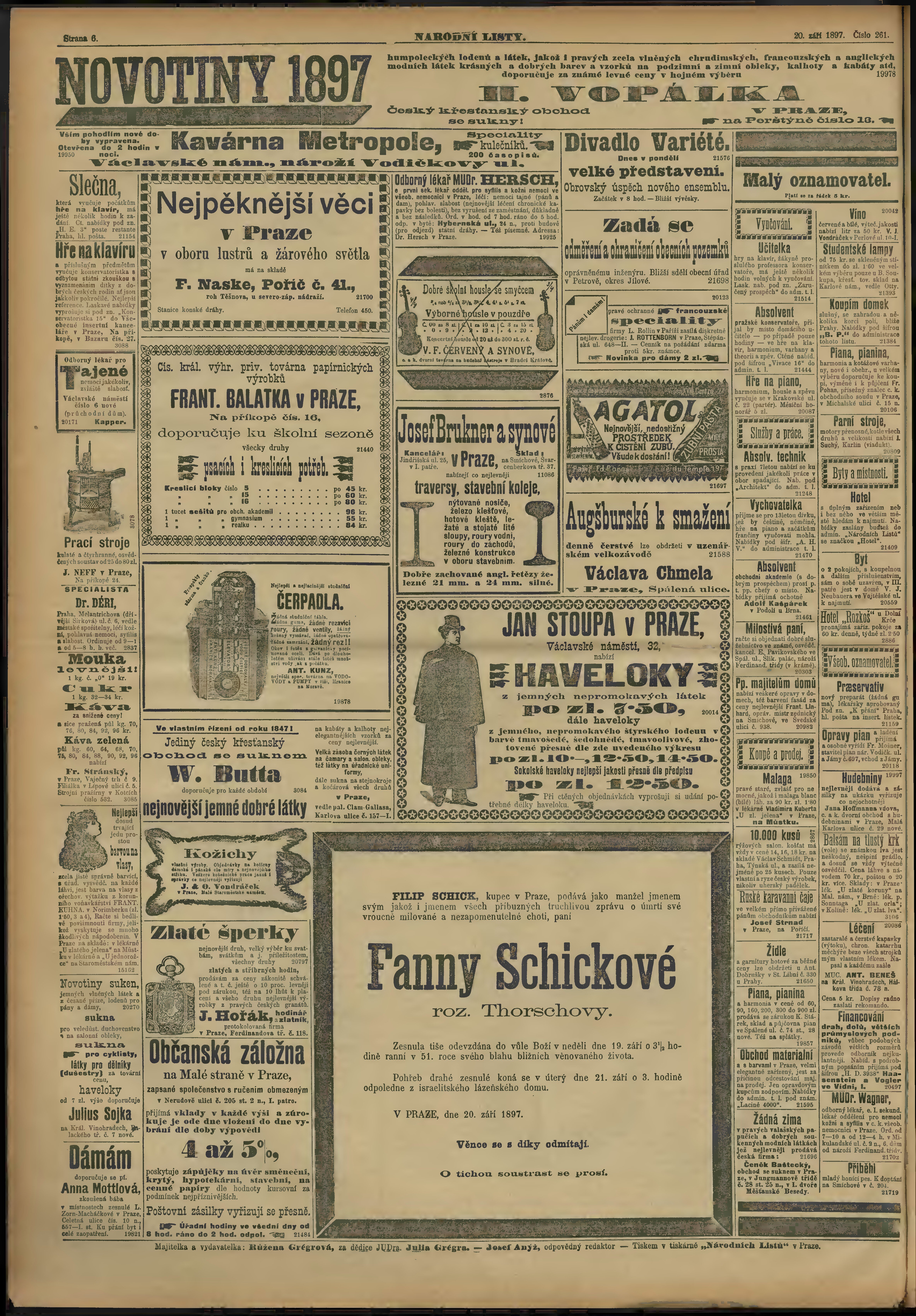 * Datum vydání výtisku: 20.9.1897 Číslo výtisku: 261