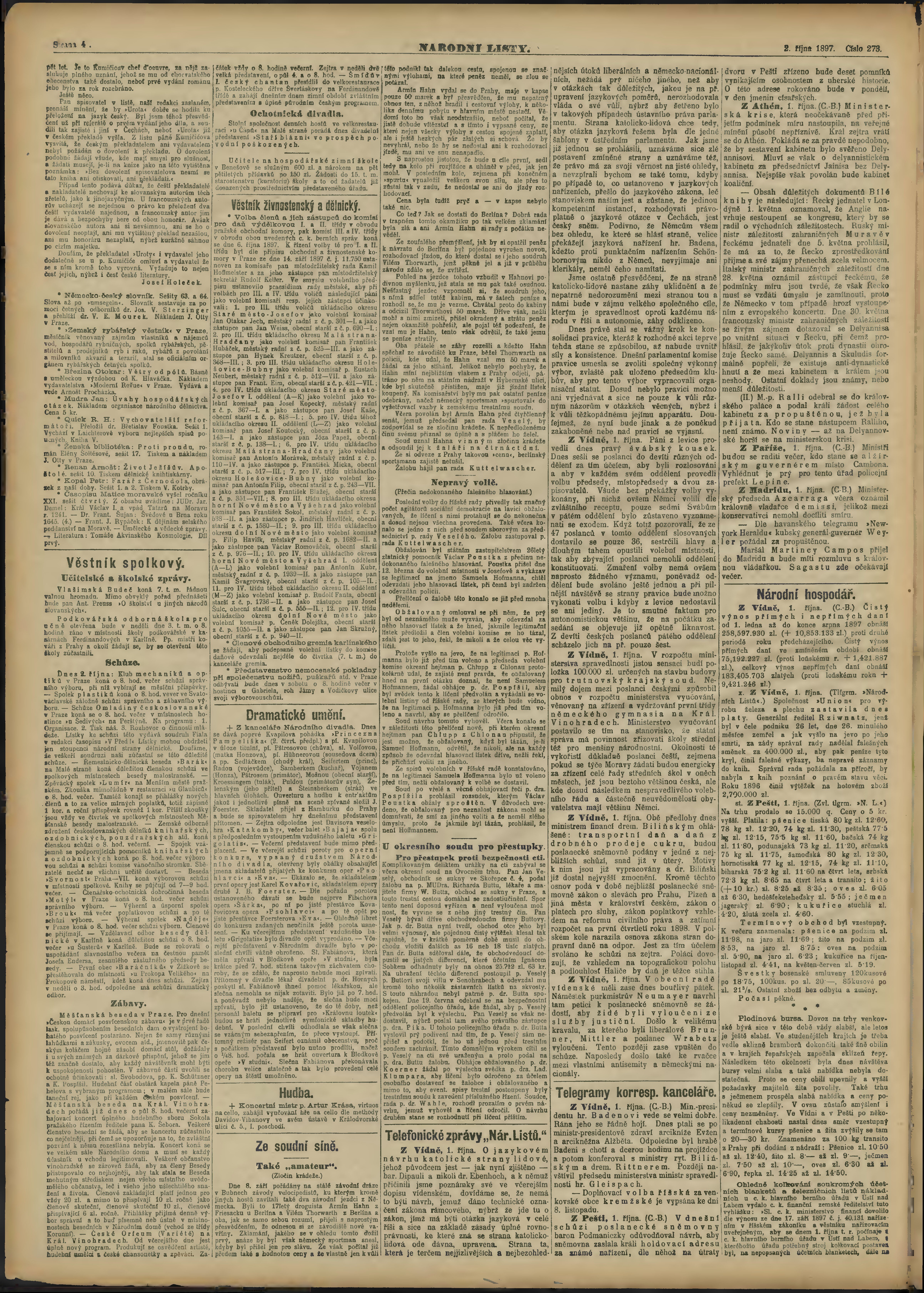 * Datum vydání výtisku: 2.10.1897 Číslo výtisku: 273