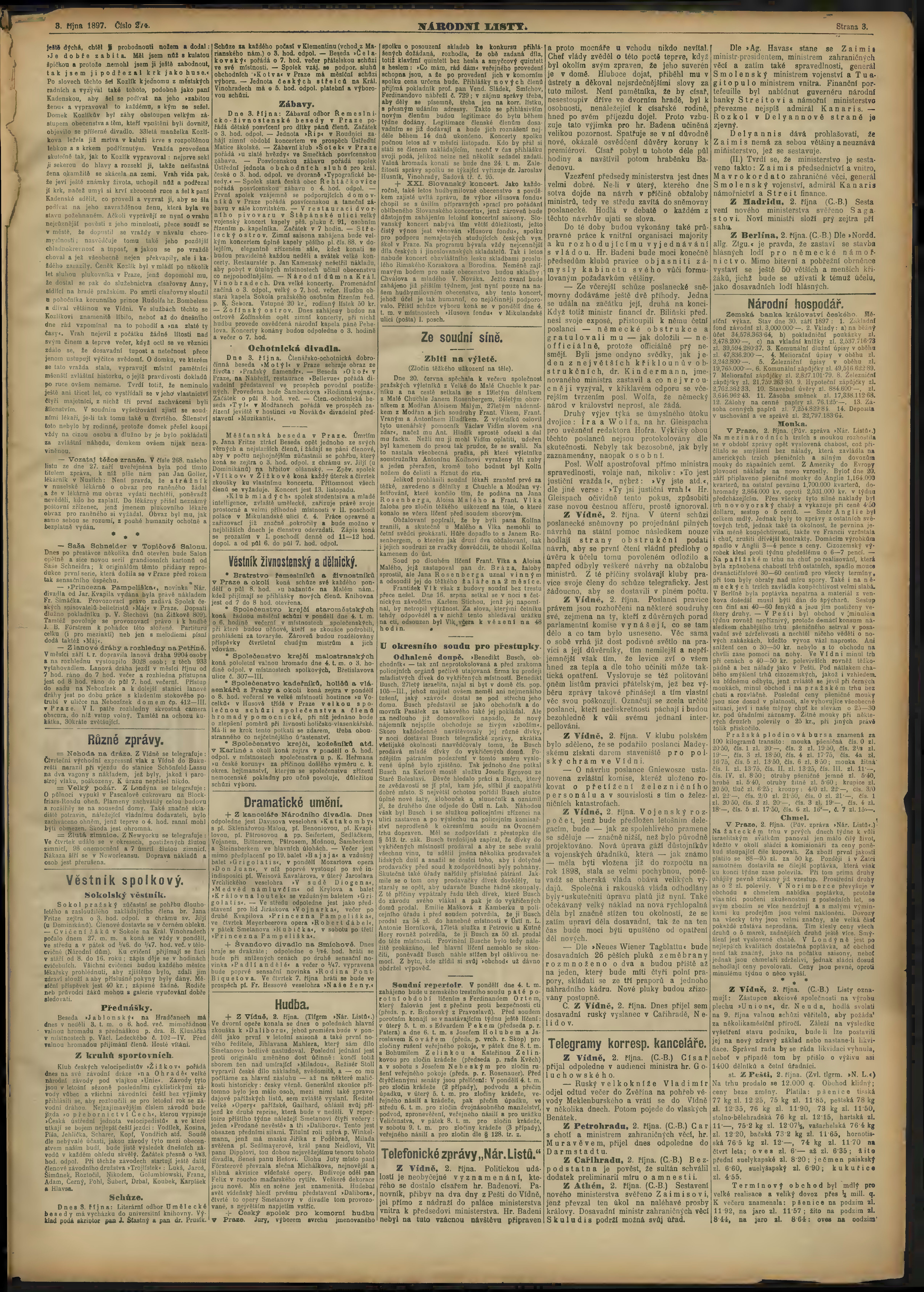 * Datum vydání výtisku: 3.10.1897 Číslo výtisku: 274