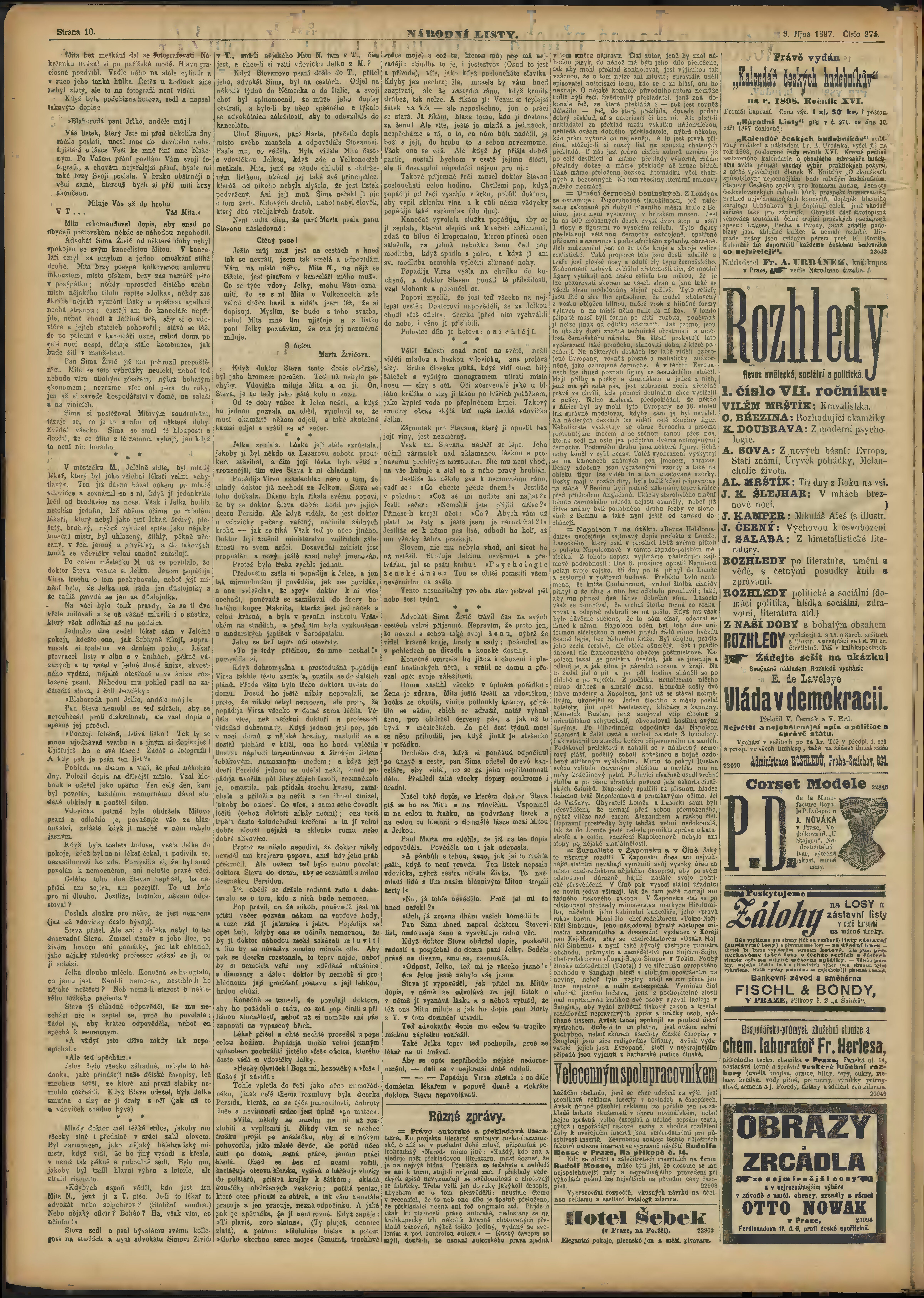 * Datum vydání výtisku: 3.10.1897 Číslo výtisku: 274