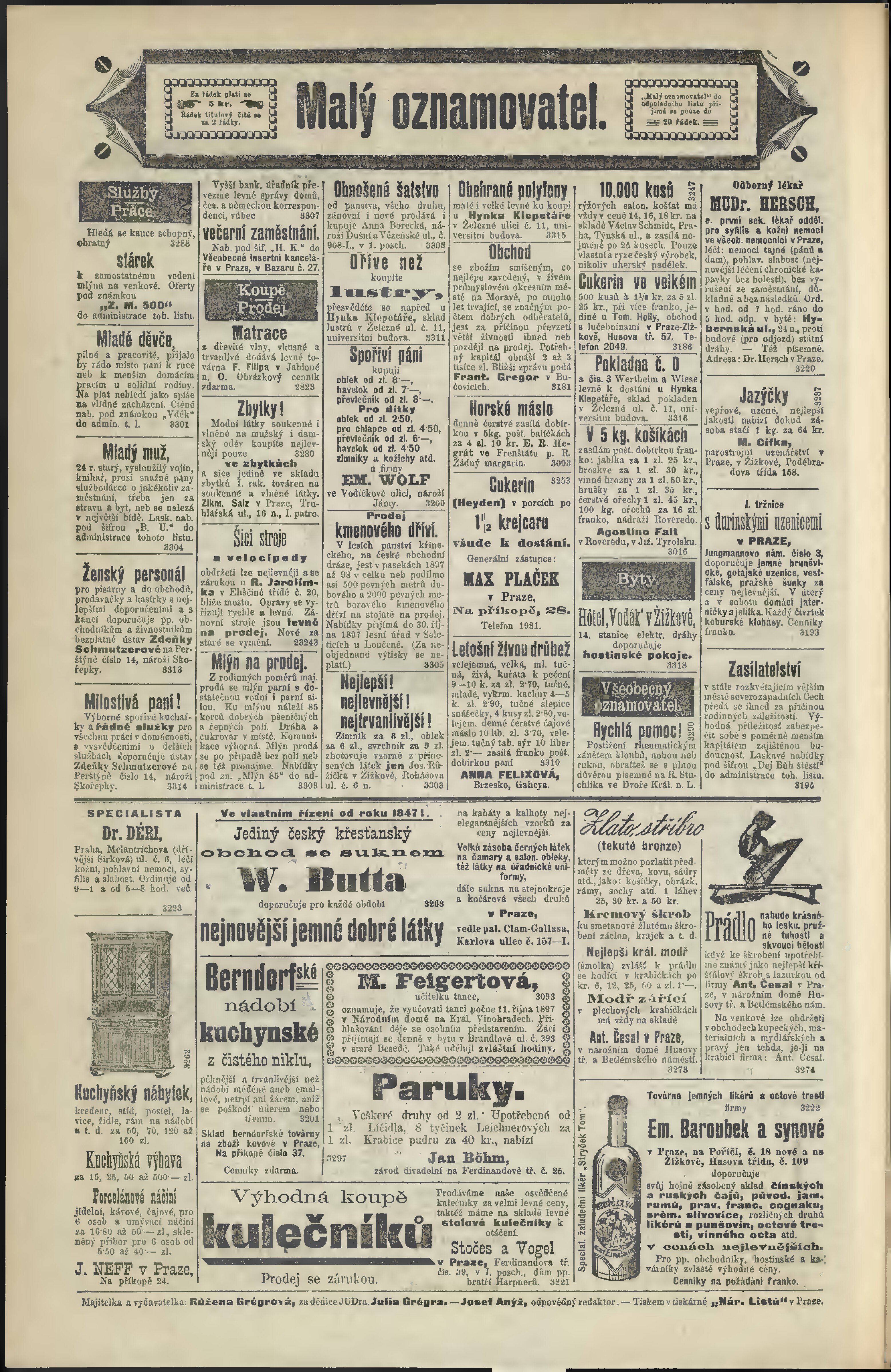 * Datum vydání výtisku: 6.10.1897 Číslo výtisku: 277 Poznámky k výtisku: odpolední vydání;