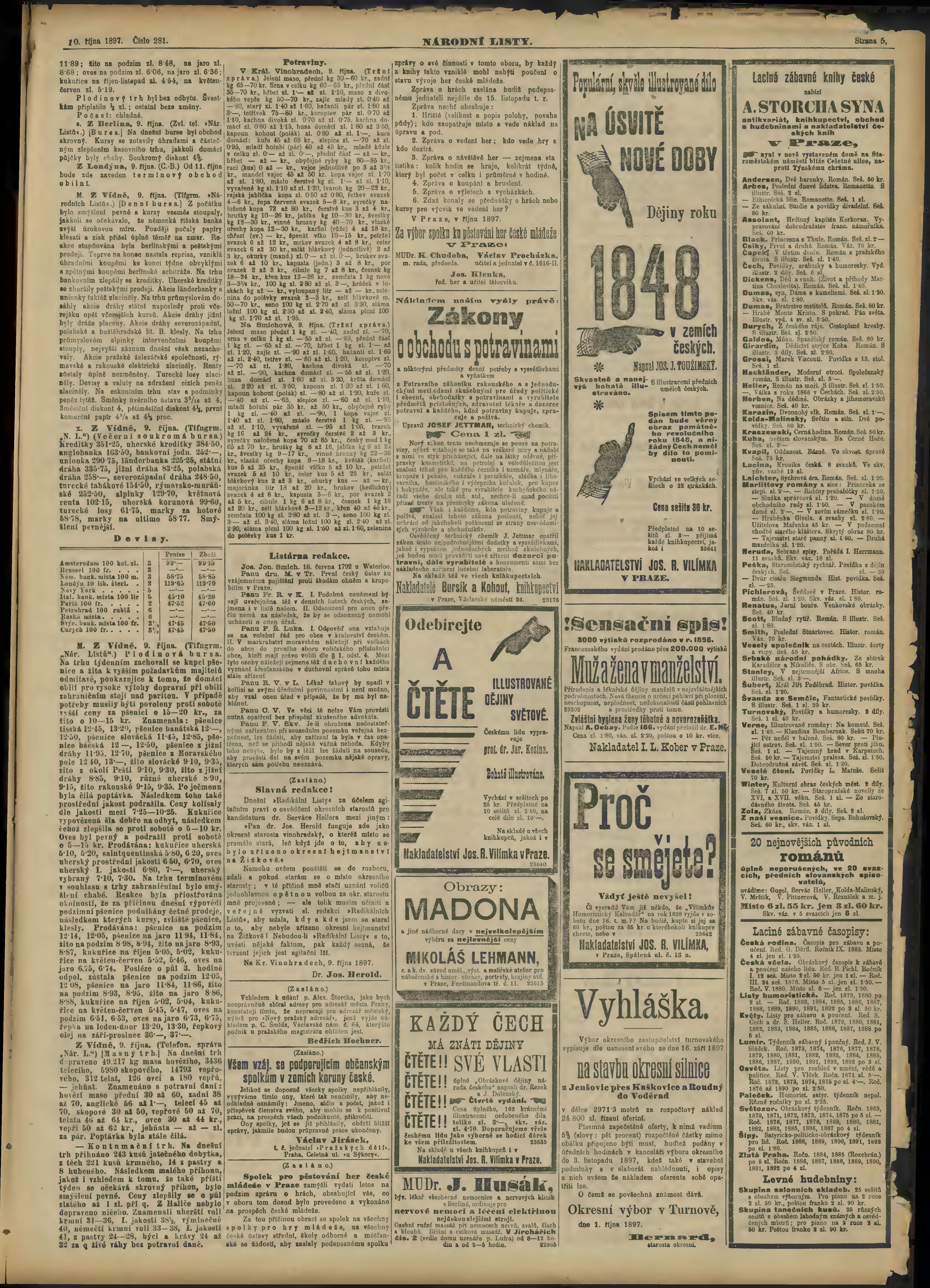 * Datum vydání výtisku: 10.10.1897 Číslo výtisku: 281
