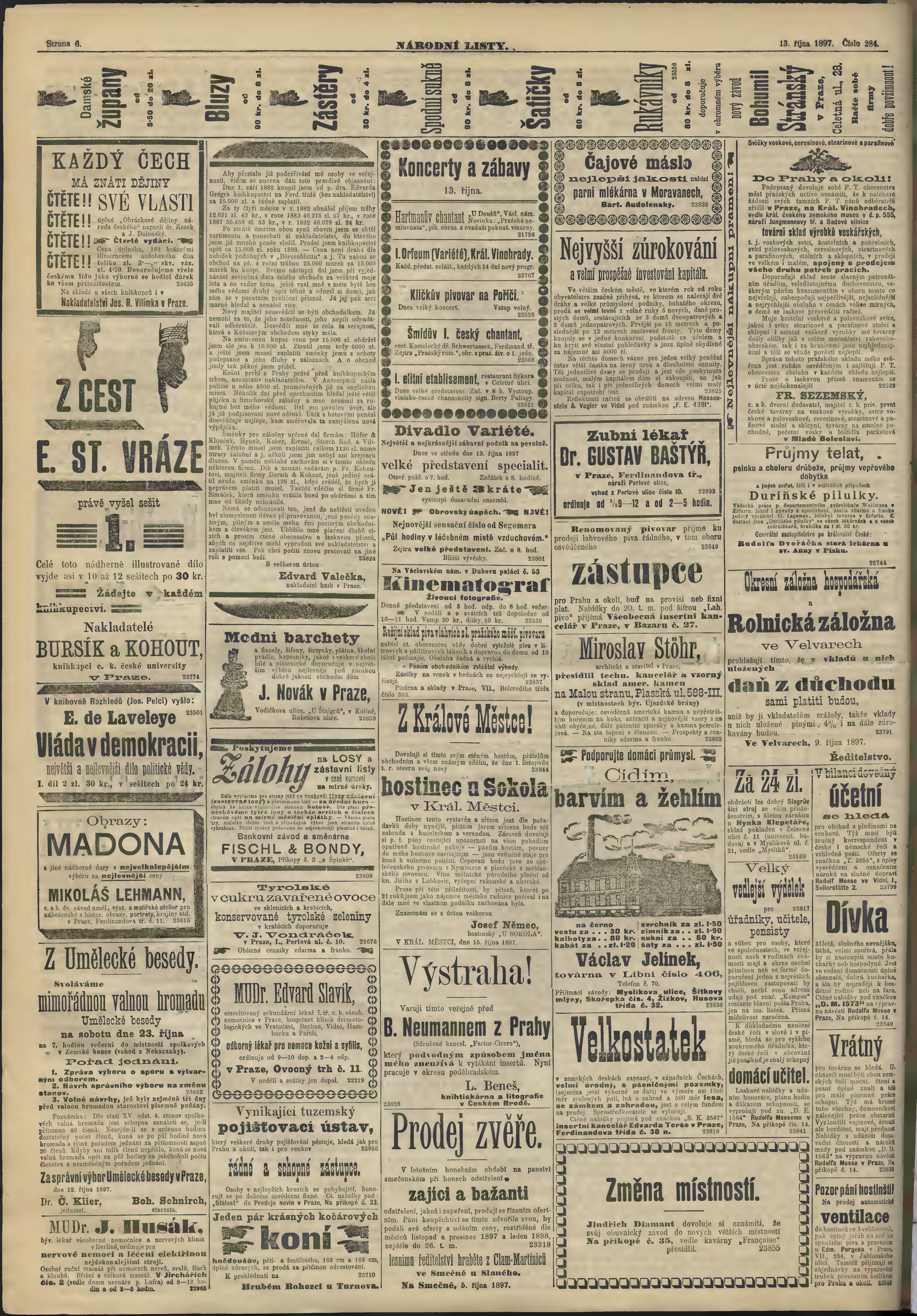* Datum vydání výtisku: 13.10.1897 Číslo výtisku: 284