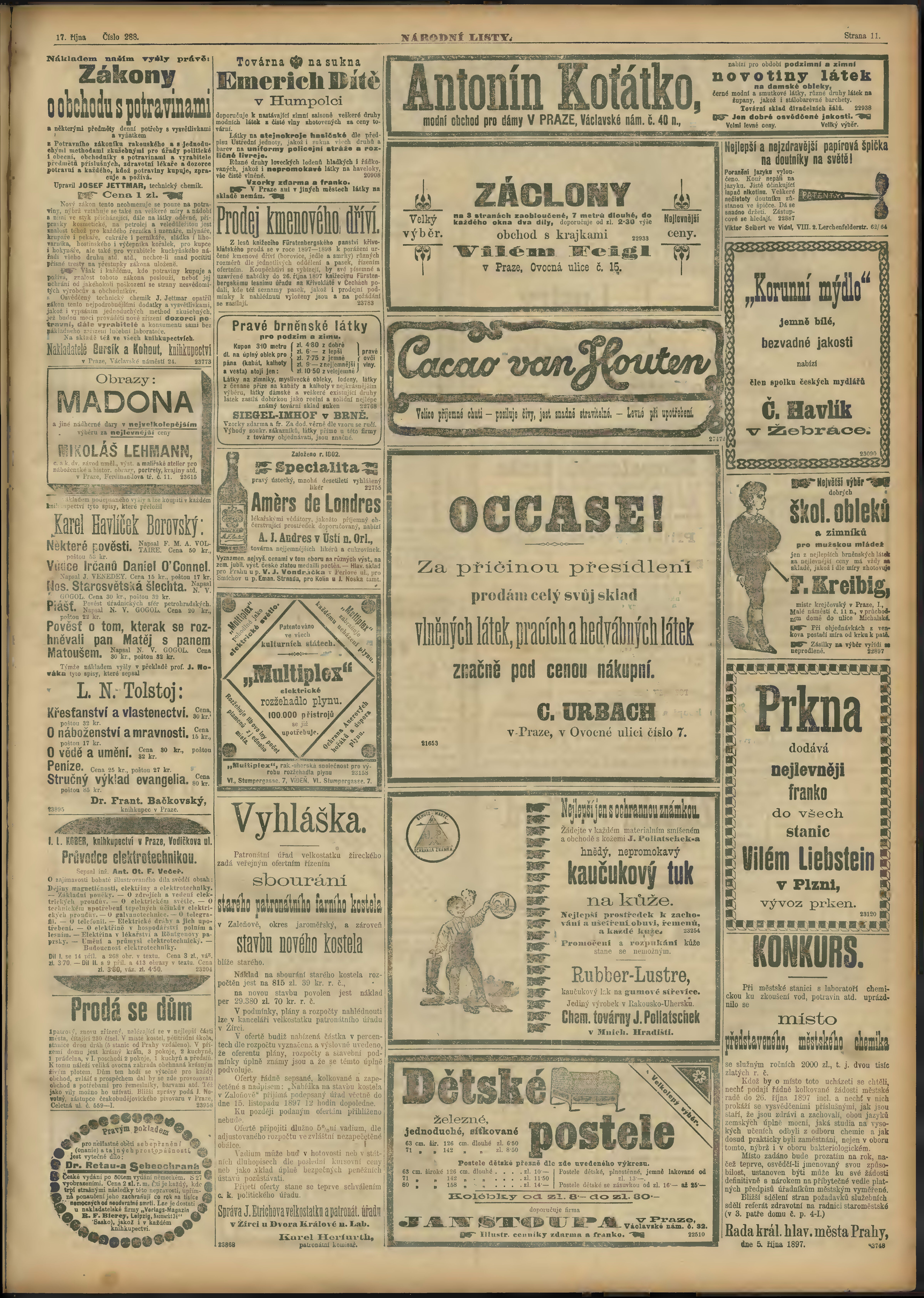 * Datum vydání výtisku: 17.10.1897 Číslo výtisku: 288