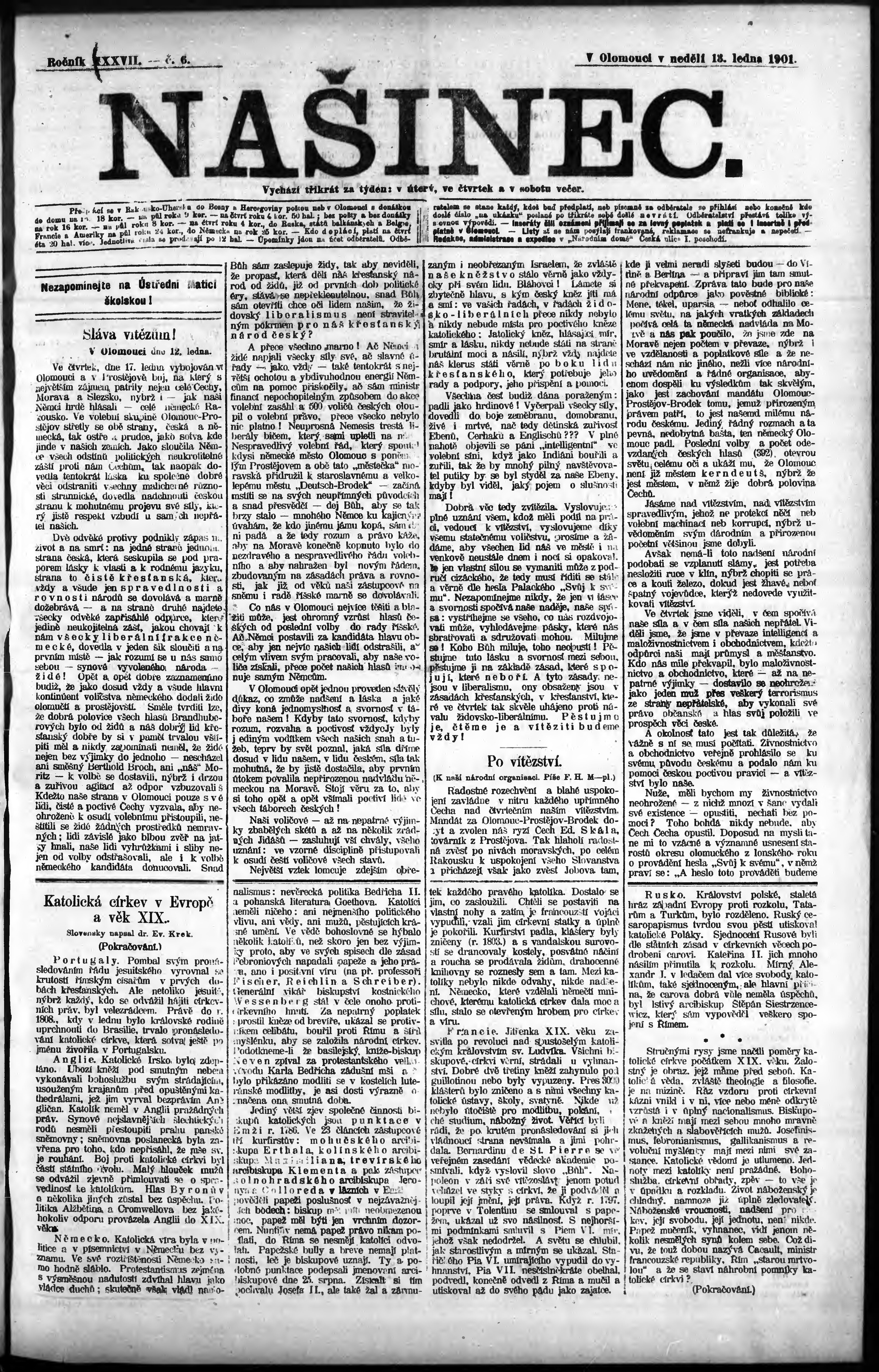 * Datum vydání výtisku: 13.1.1901 Číslo výtisku: 6