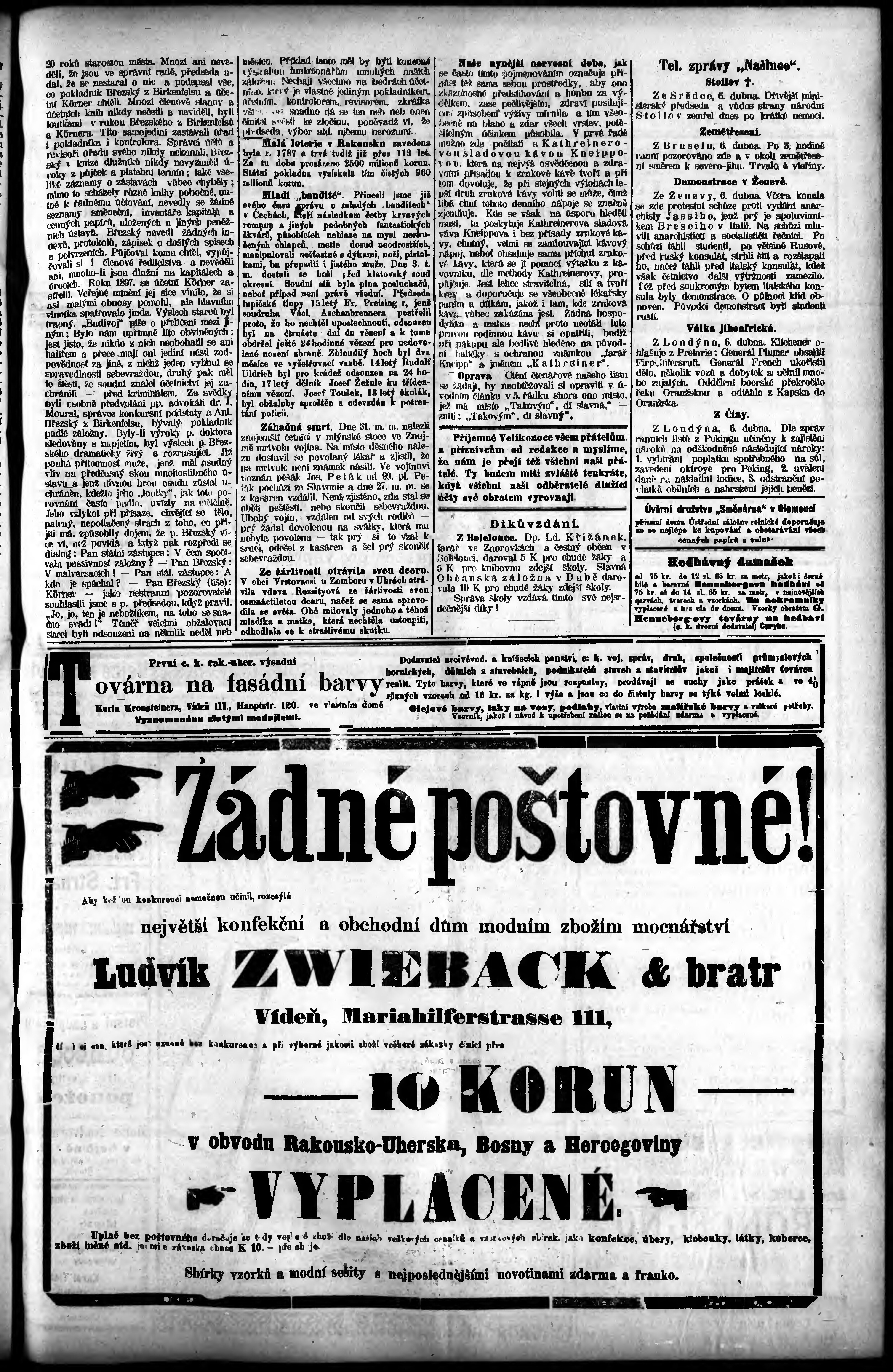 * Datum vydání výtisku: 7.4.1901 Číslo výtisku: 42 - 43