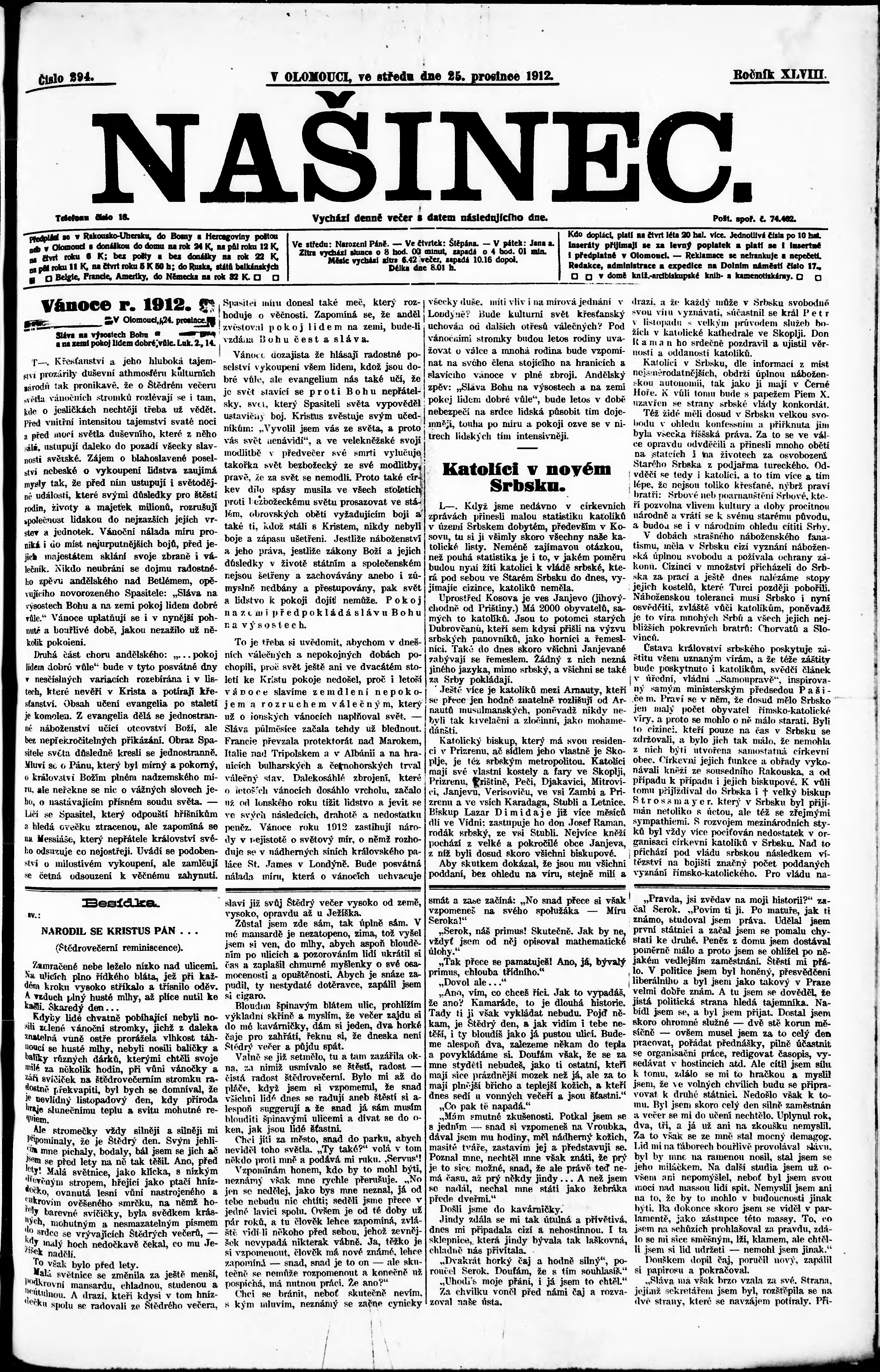* Datum vydání výtisku: 25.12.1912 Číslo výtisku: 294