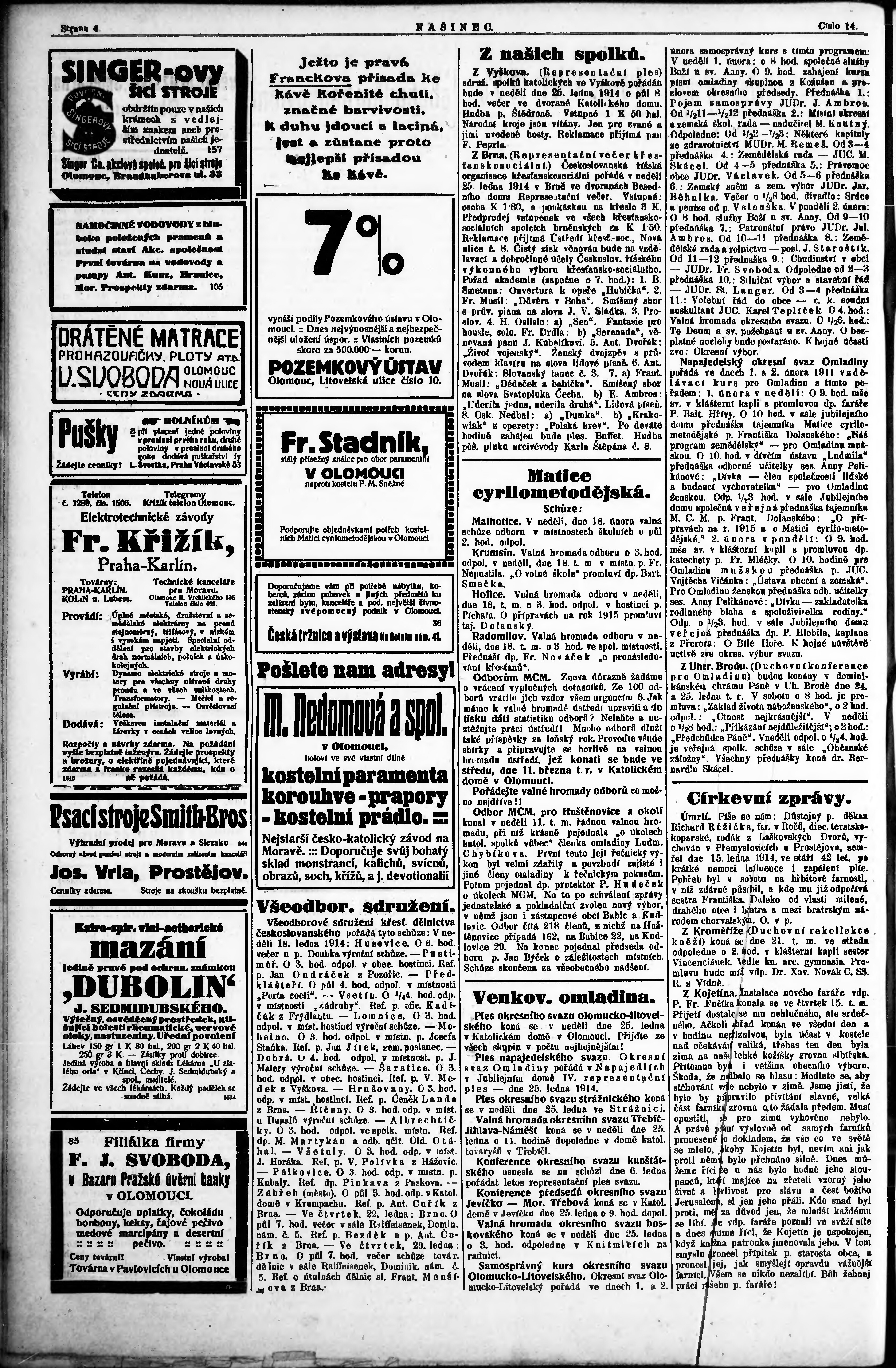 * Datum vydání výtisku: 18.1.1914 Číslo výtisku: 14