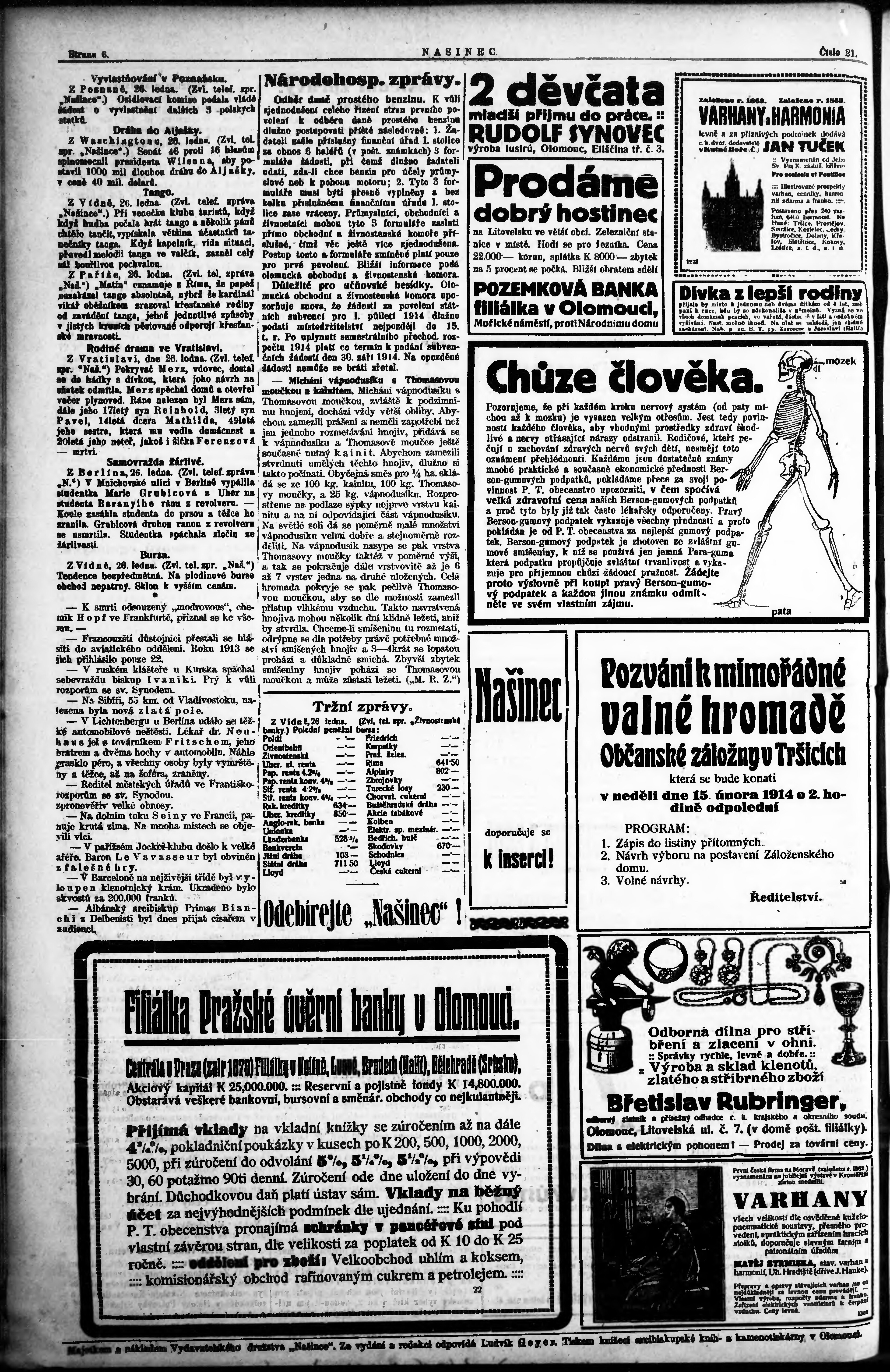 * Datum vydání výtisku: 26.1.1914 Číslo výtisku: 21 Poznámky k výtisku: chybný údaj v dataci;