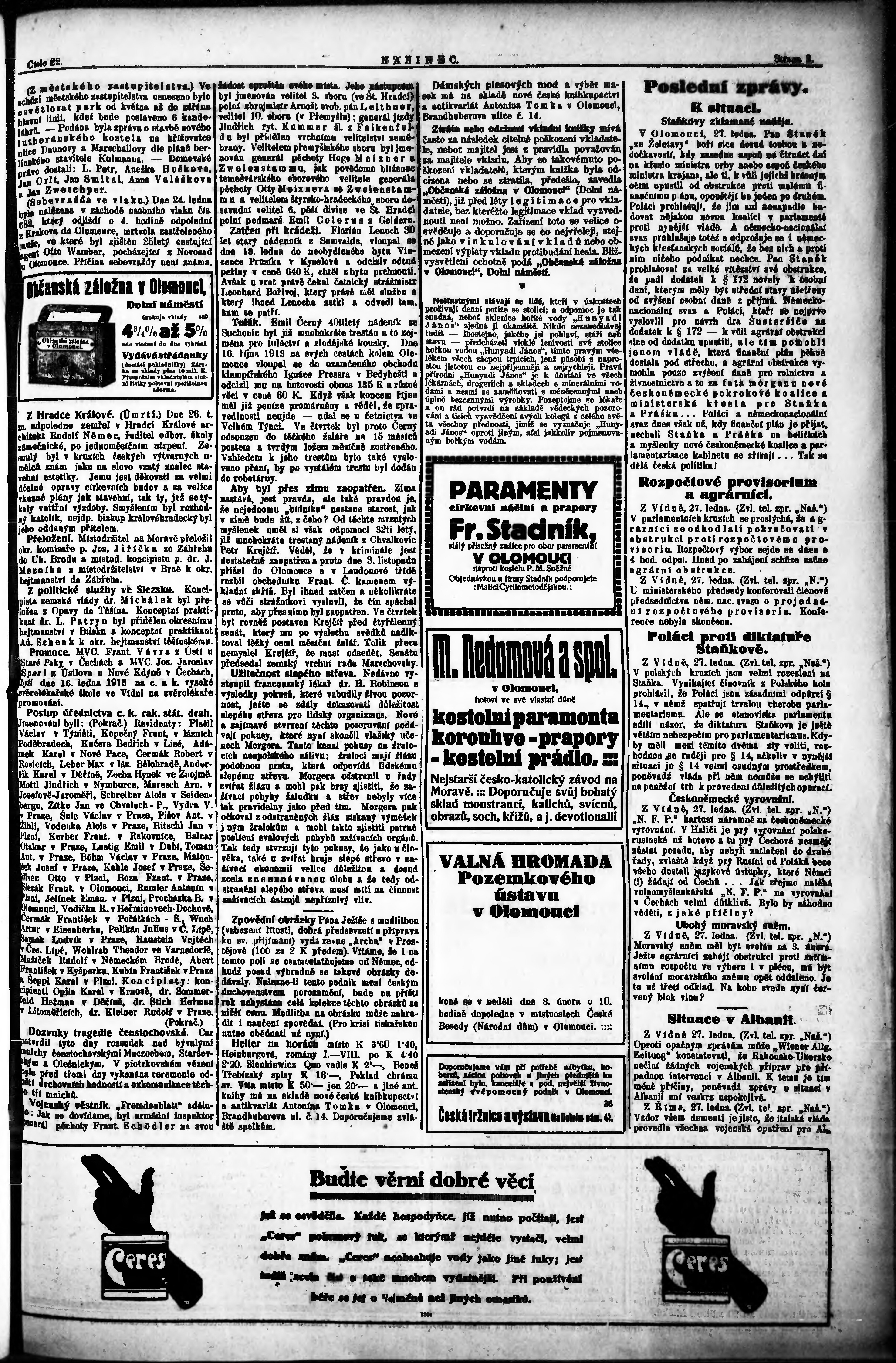 * Datum vydání výtisku: 28.1.1914 Číslo výtisku: 22