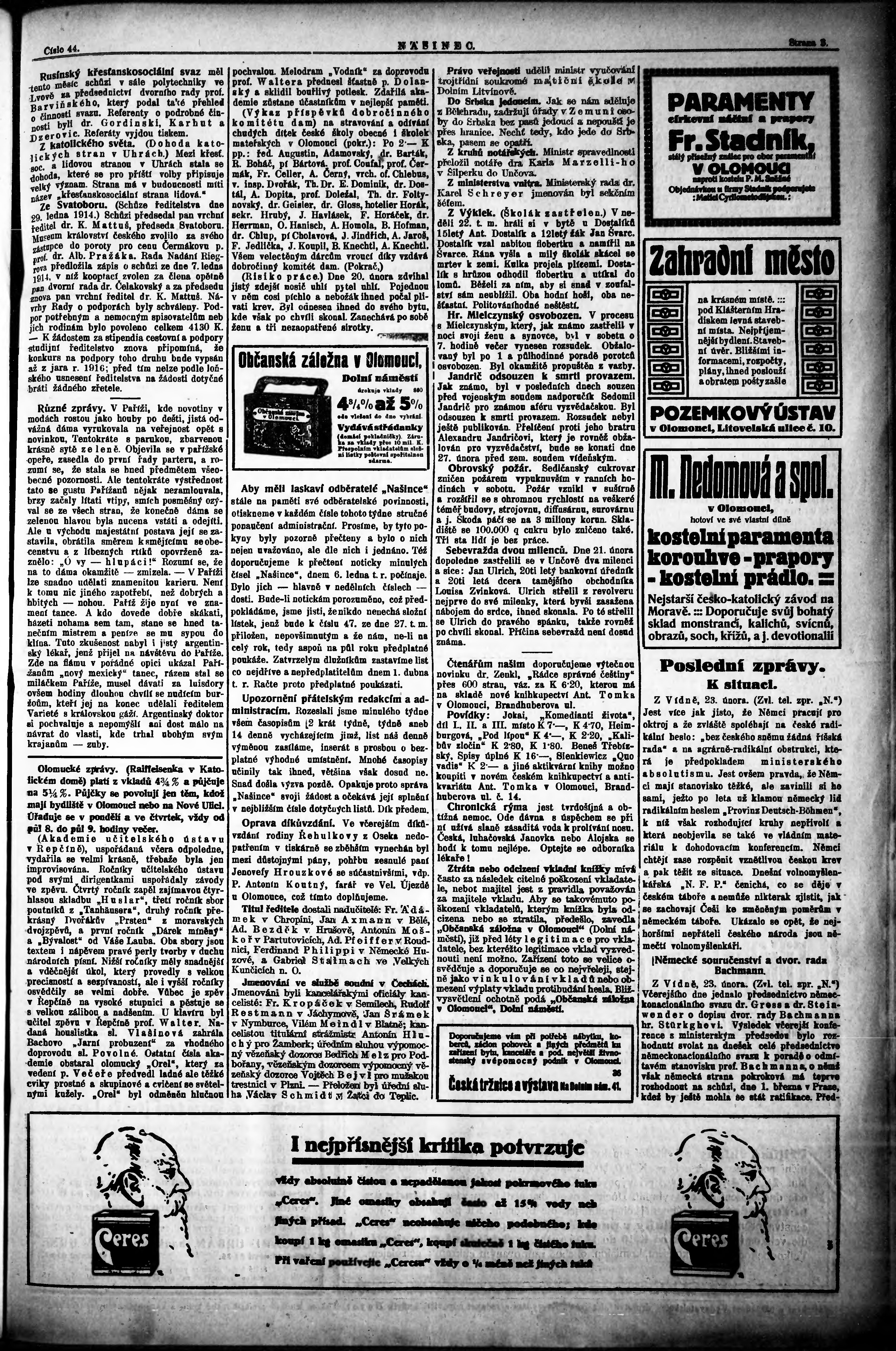 * Datum vydání výtisku: 24.2.1914 Číslo výtisku: 44