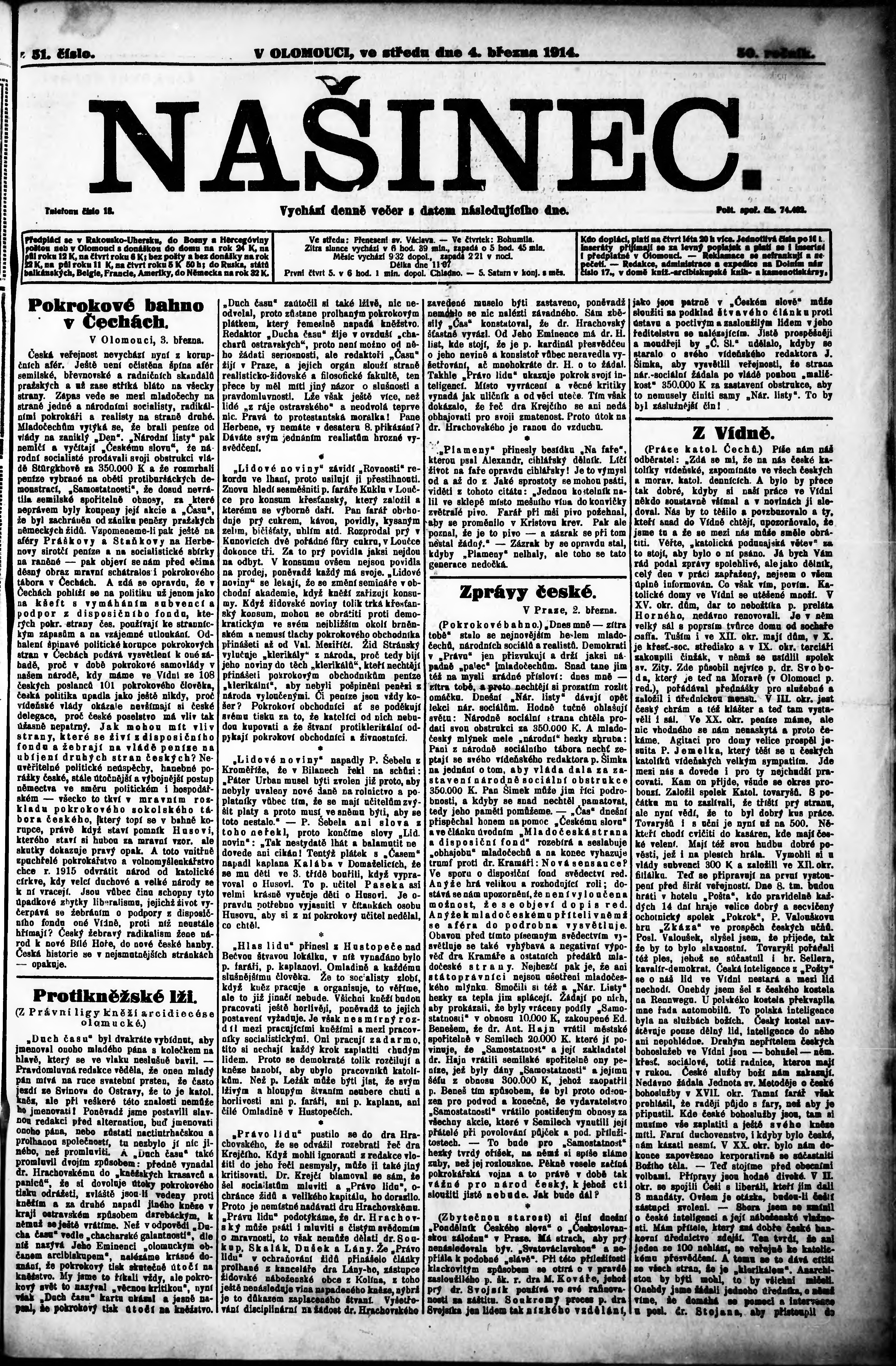* Datum vydání výtisku: 4.3.1914 Číslo výtisku: 51