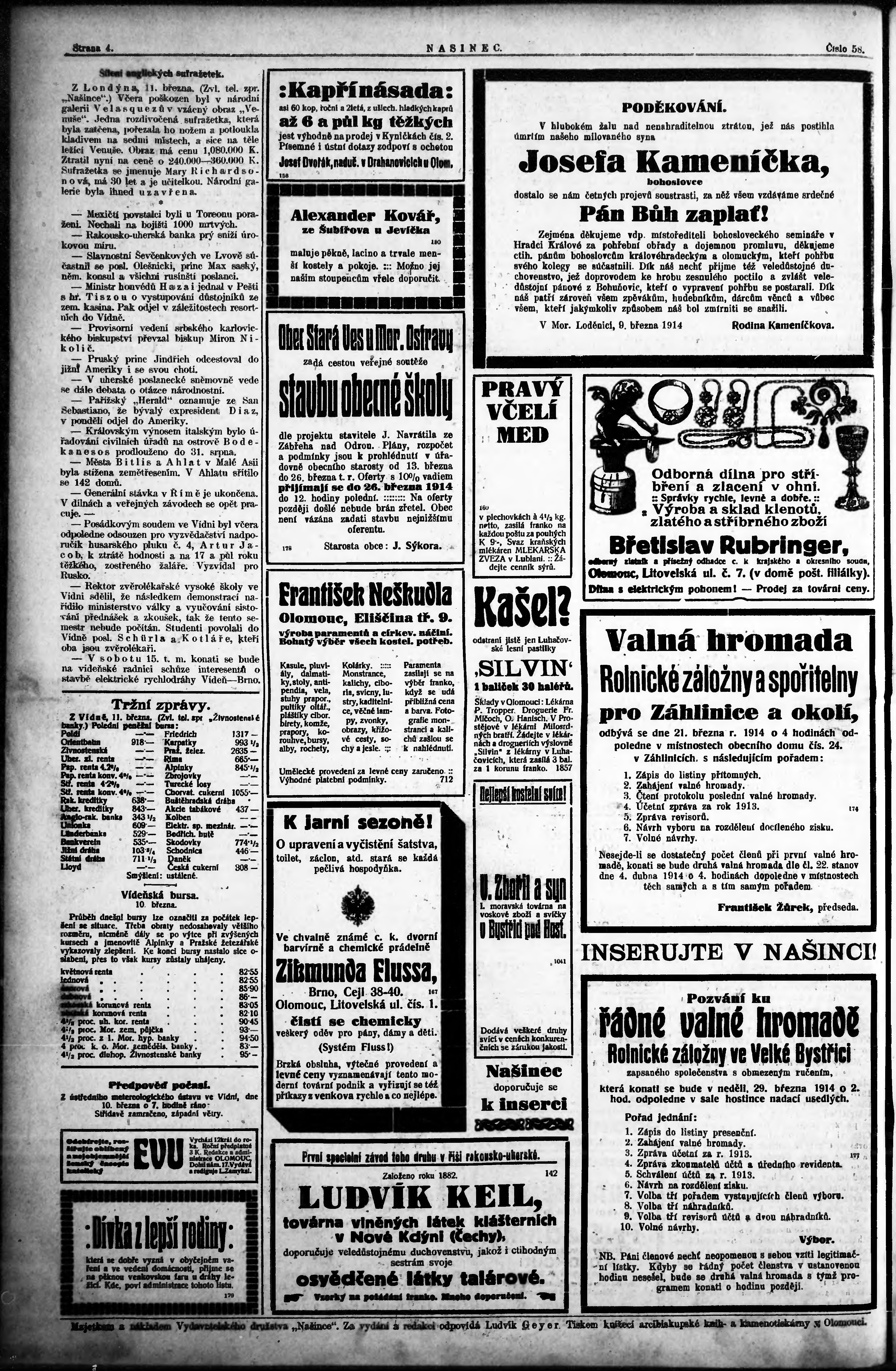 * Datum vydání výtisku: 12.3.1914 Číslo výtisku: 58