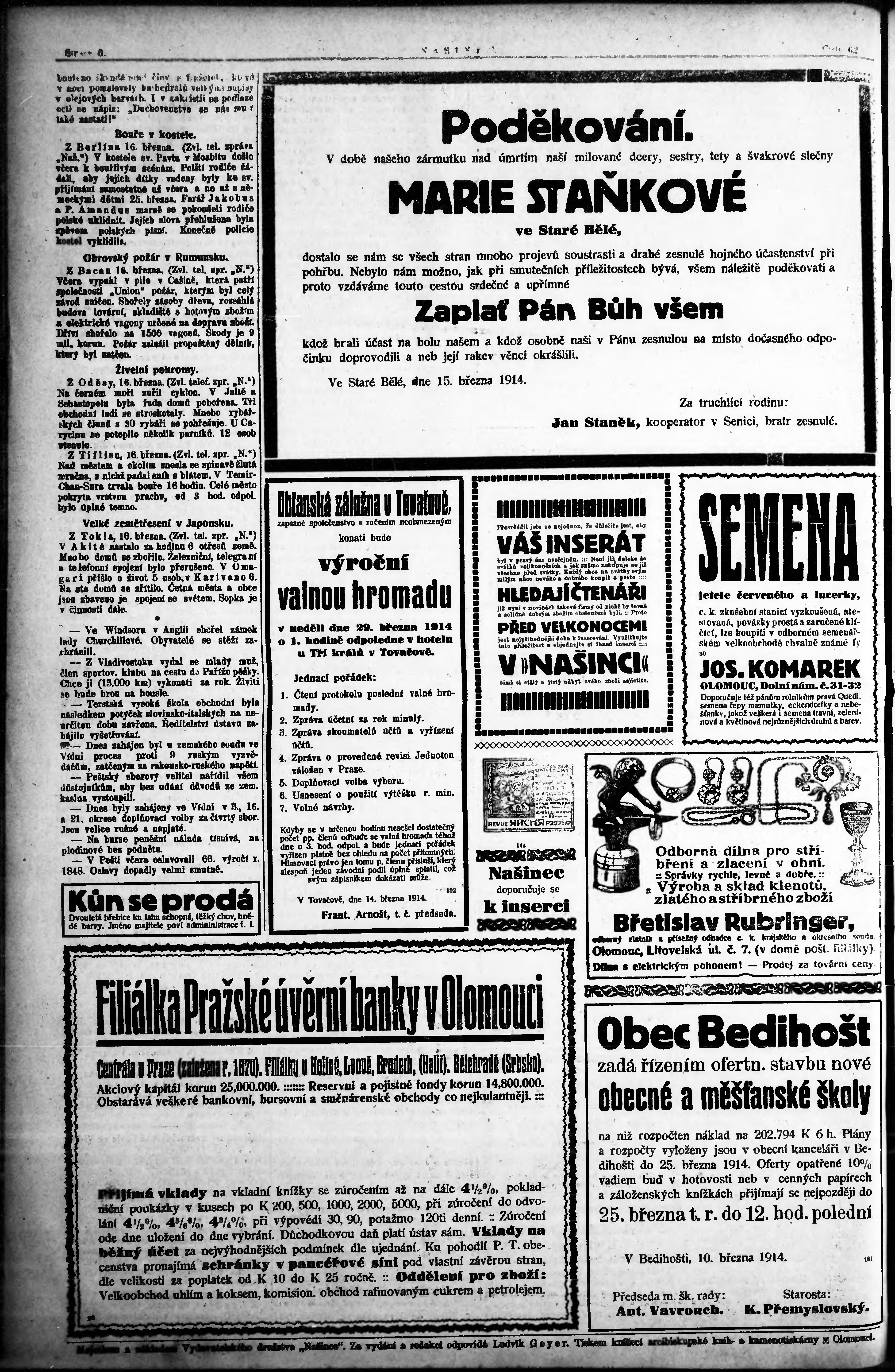 * Datum vydání výtisku: 17.3.1914 Číslo výtisku: 62