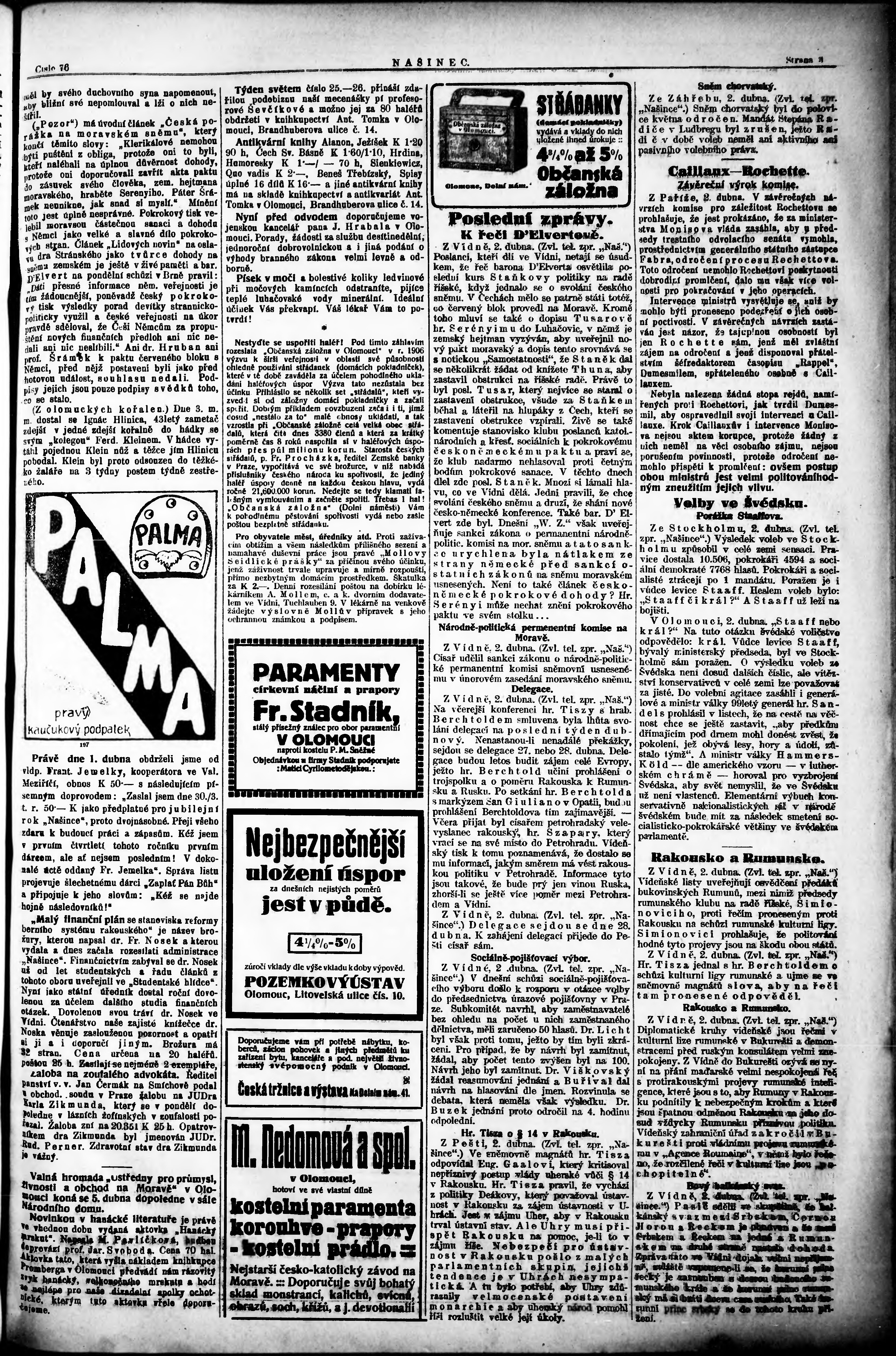 * Datum vydání výtisku: 3.4.1914 Číslo výtisku: 76
