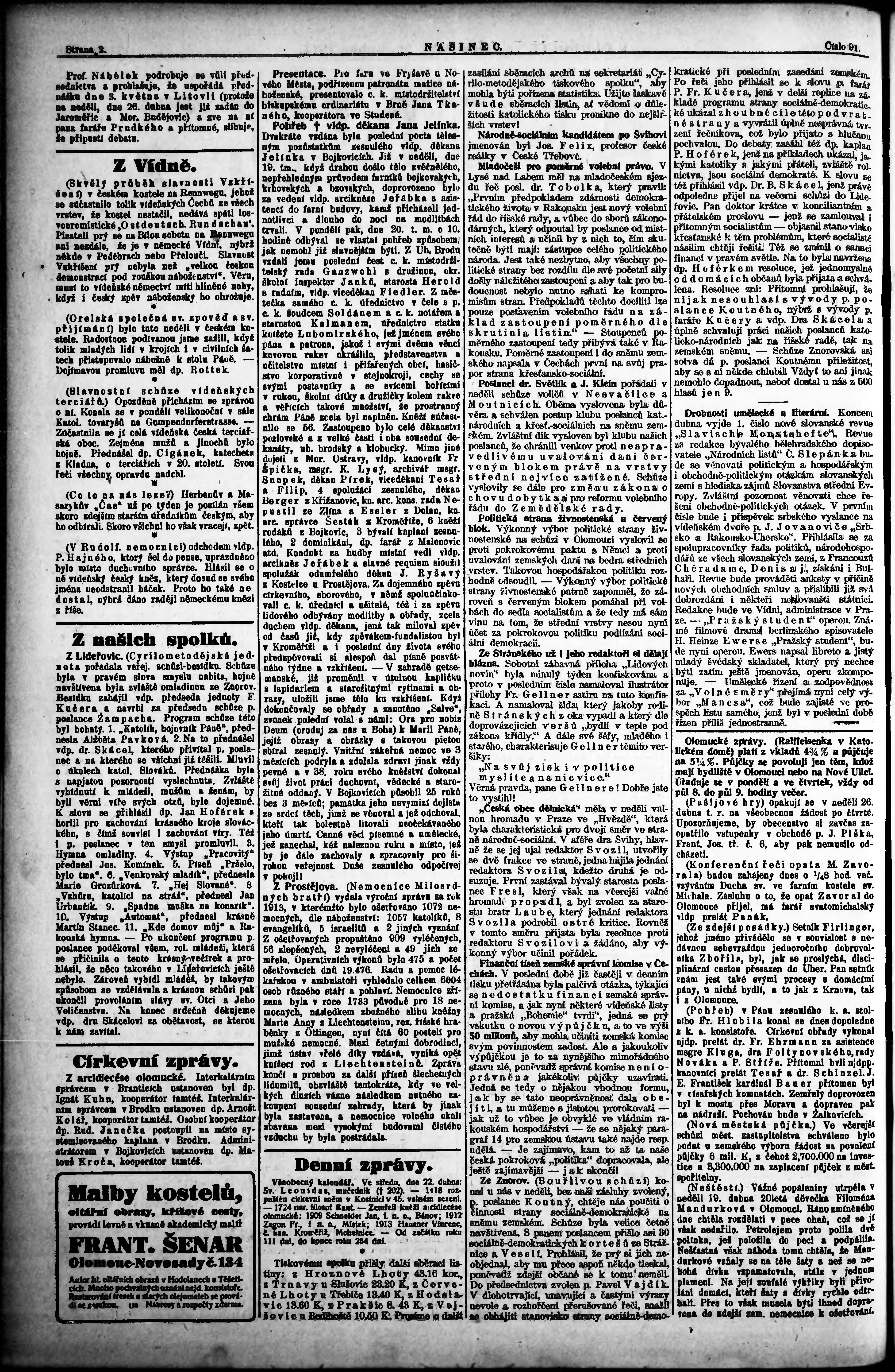 * Datum vydání výtisku: 22.4.1914 Číslo výtisku: 91