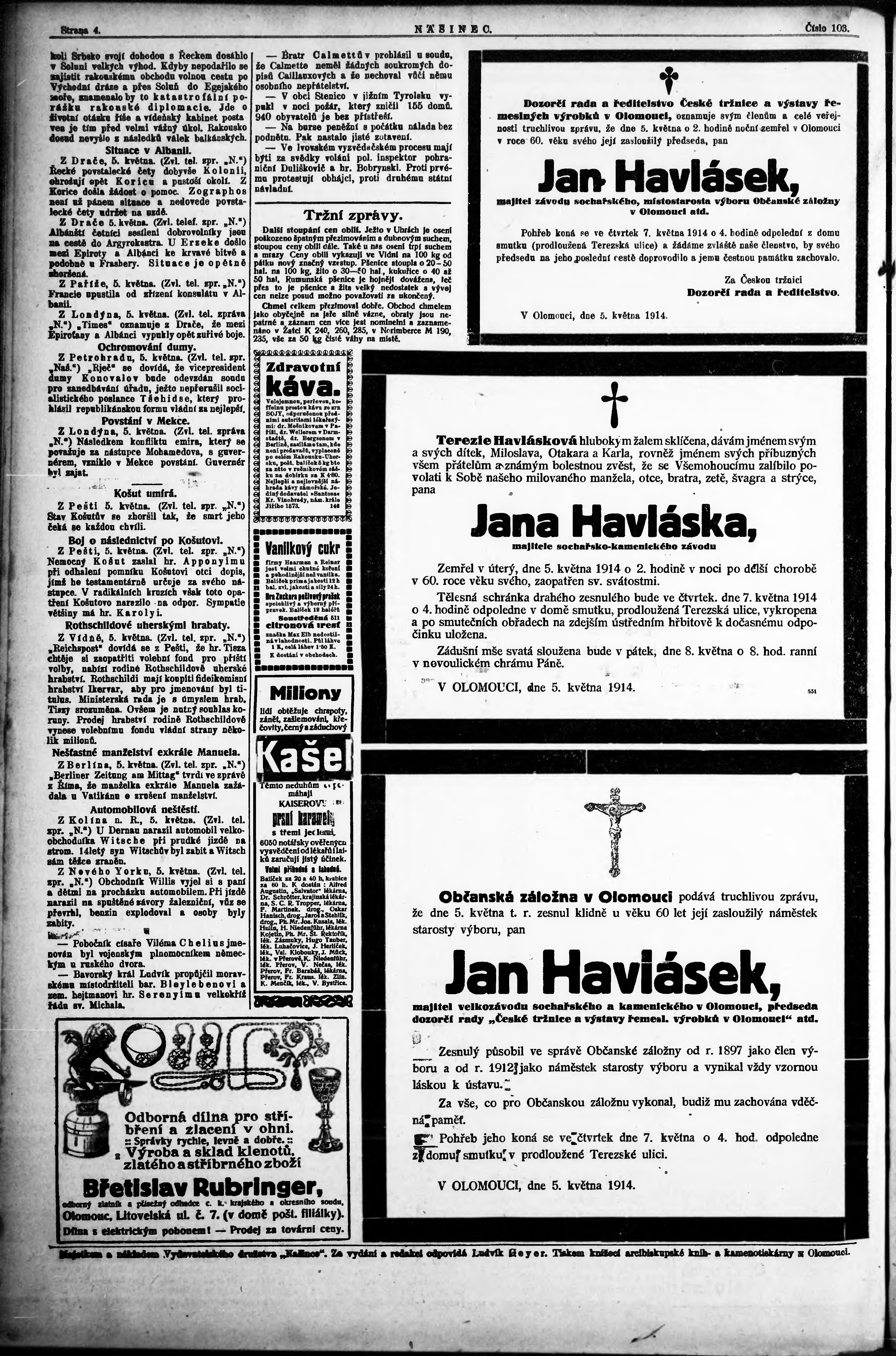* Datum vydání výtisku: 6.5.1914 Číslo výtisku: 103