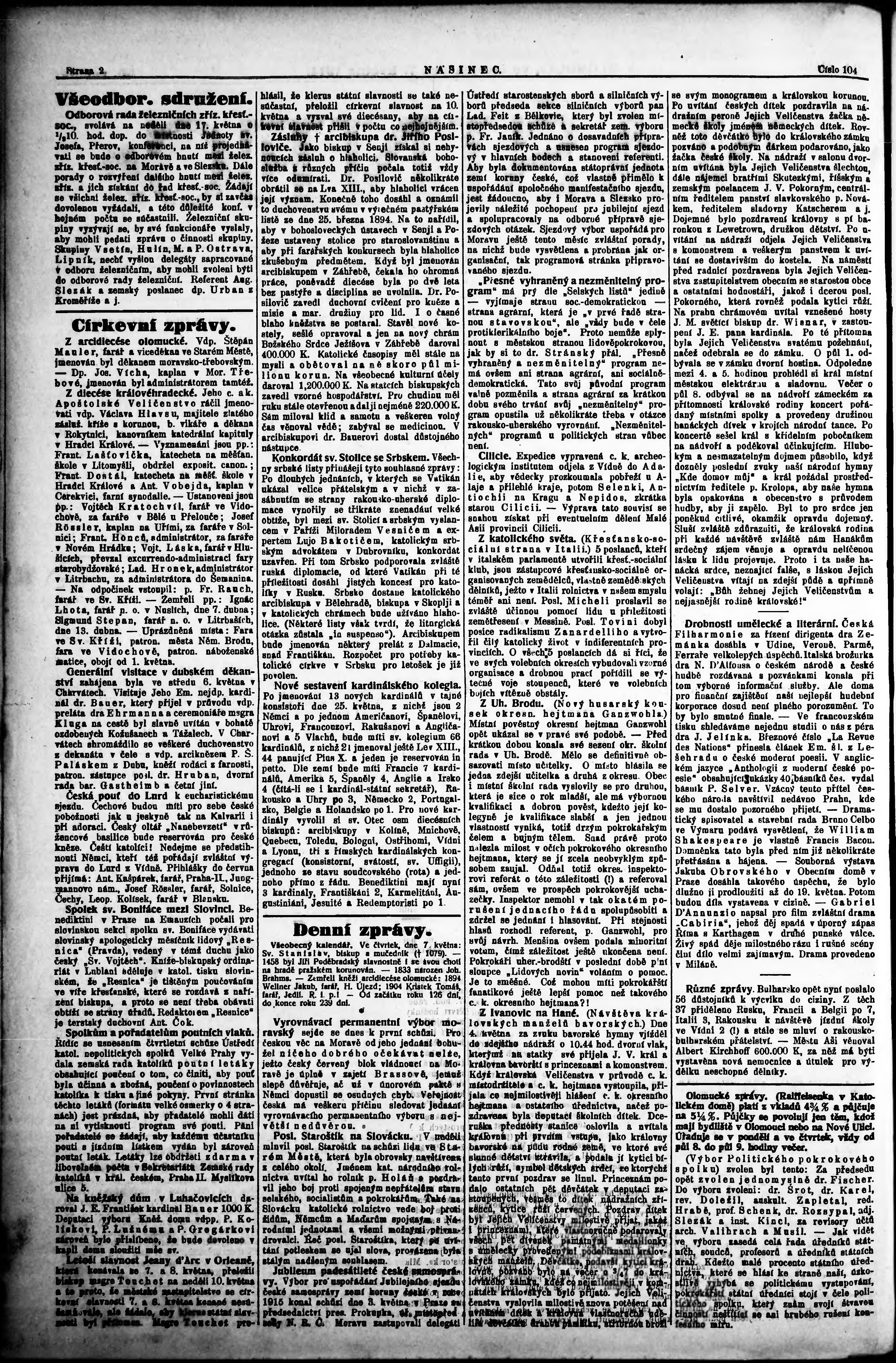 * Datum vydání výtisku: 7.5.1914 Číslo výtisku: 104