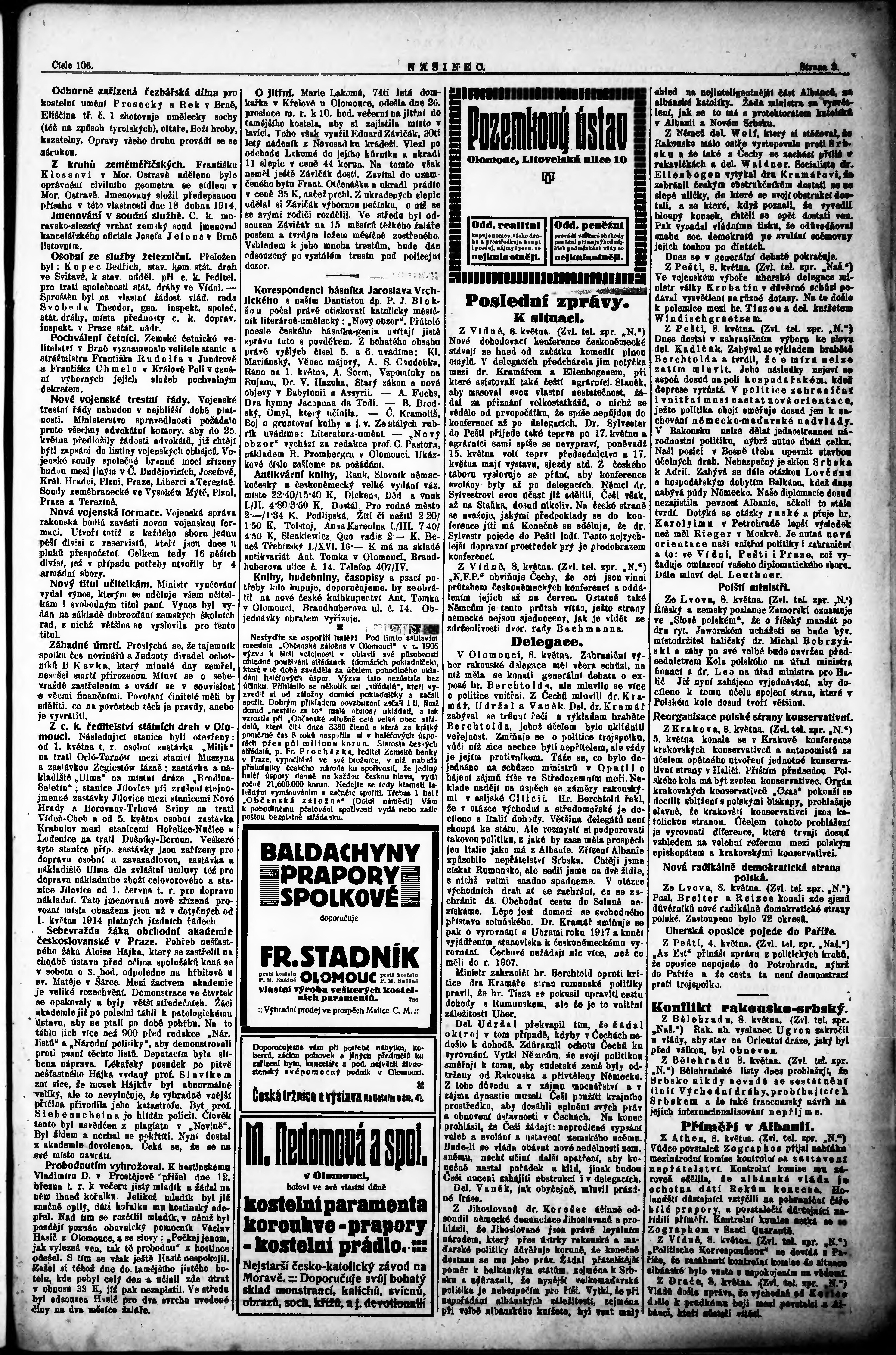 * Datum vydání výtisku: 9.5.1914 Číslo výtisku: 106