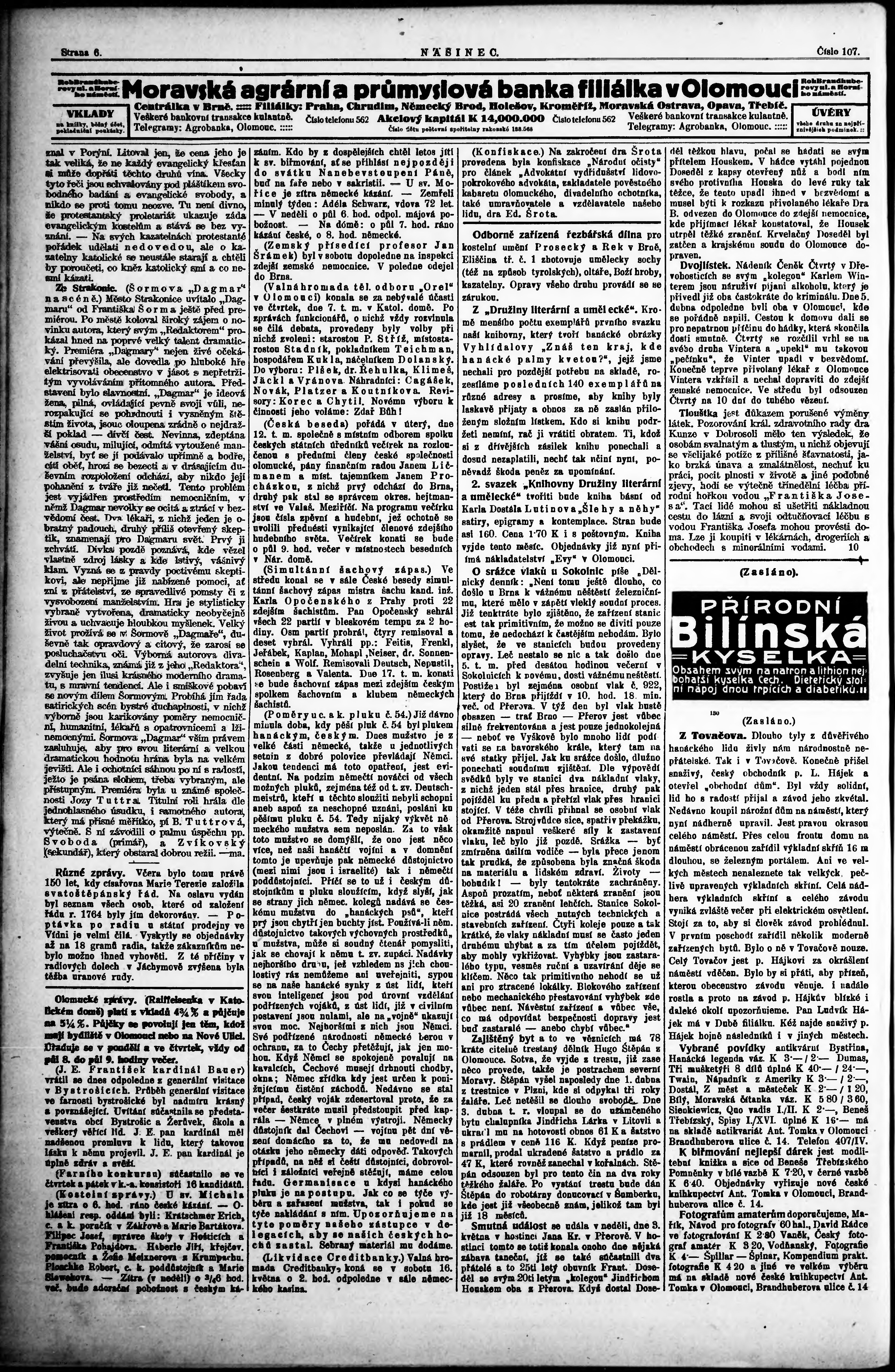 * Datum vydání výtisku: 10.5.1914 Číslo výtisku: 107