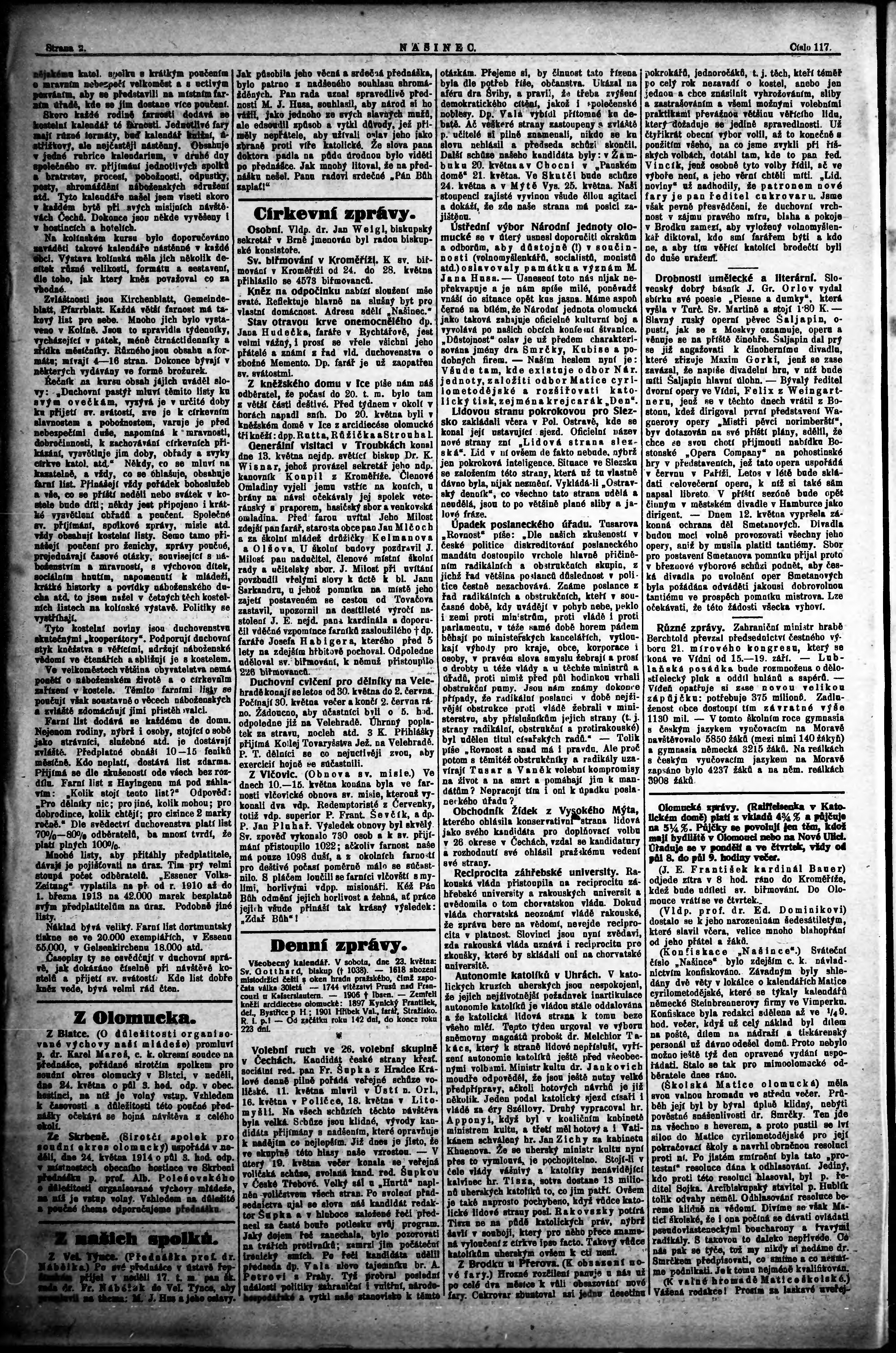 * Datum vydání výtisku: 23.5.1914 Číslo výtisku: 117