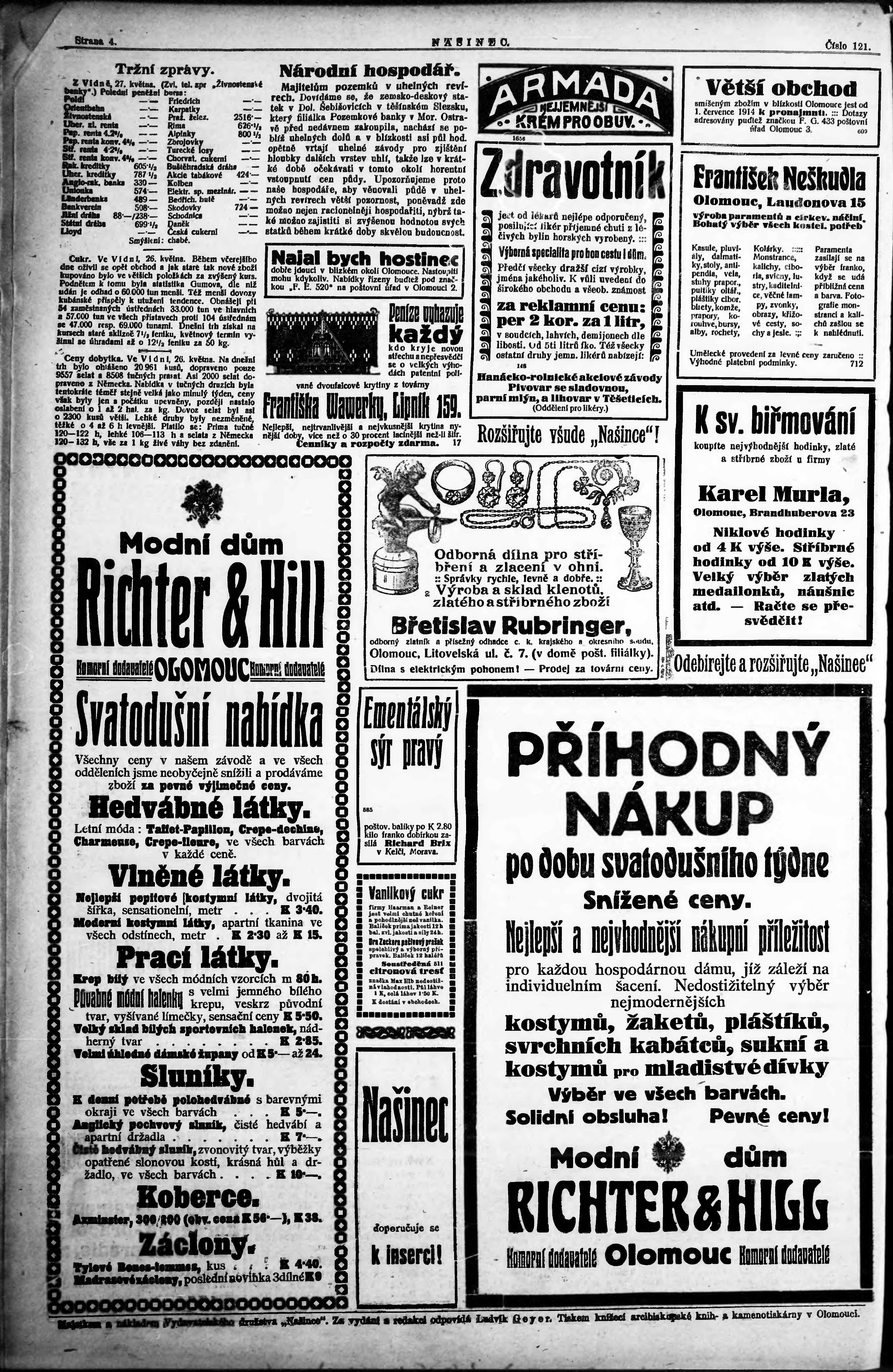 * Datum vydání výtisku: 28.5.1914 Číslo výtisku: 121