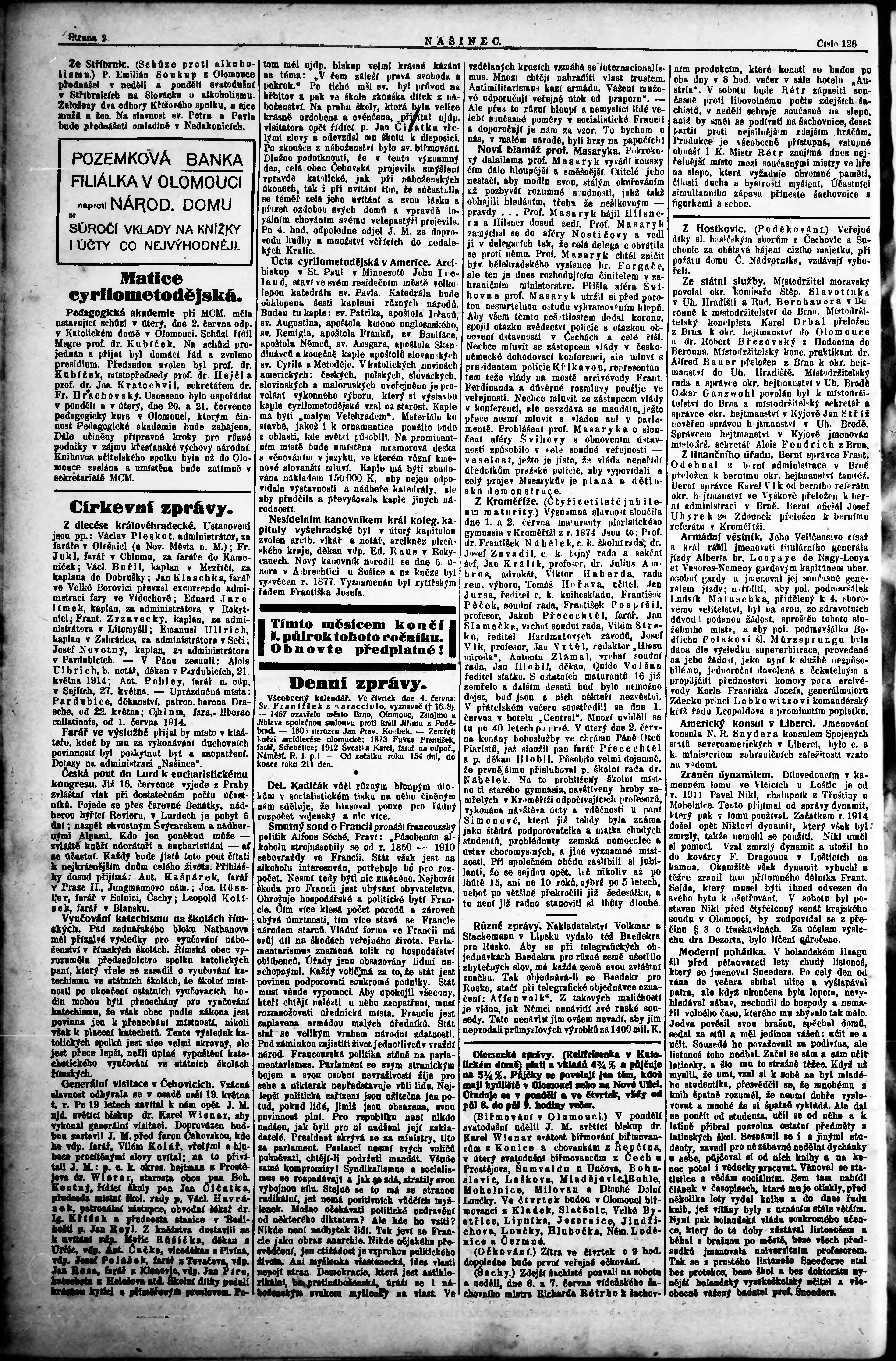 * Datum vydání výtisku: 4.6.1914 Číslo výtisku: 126
