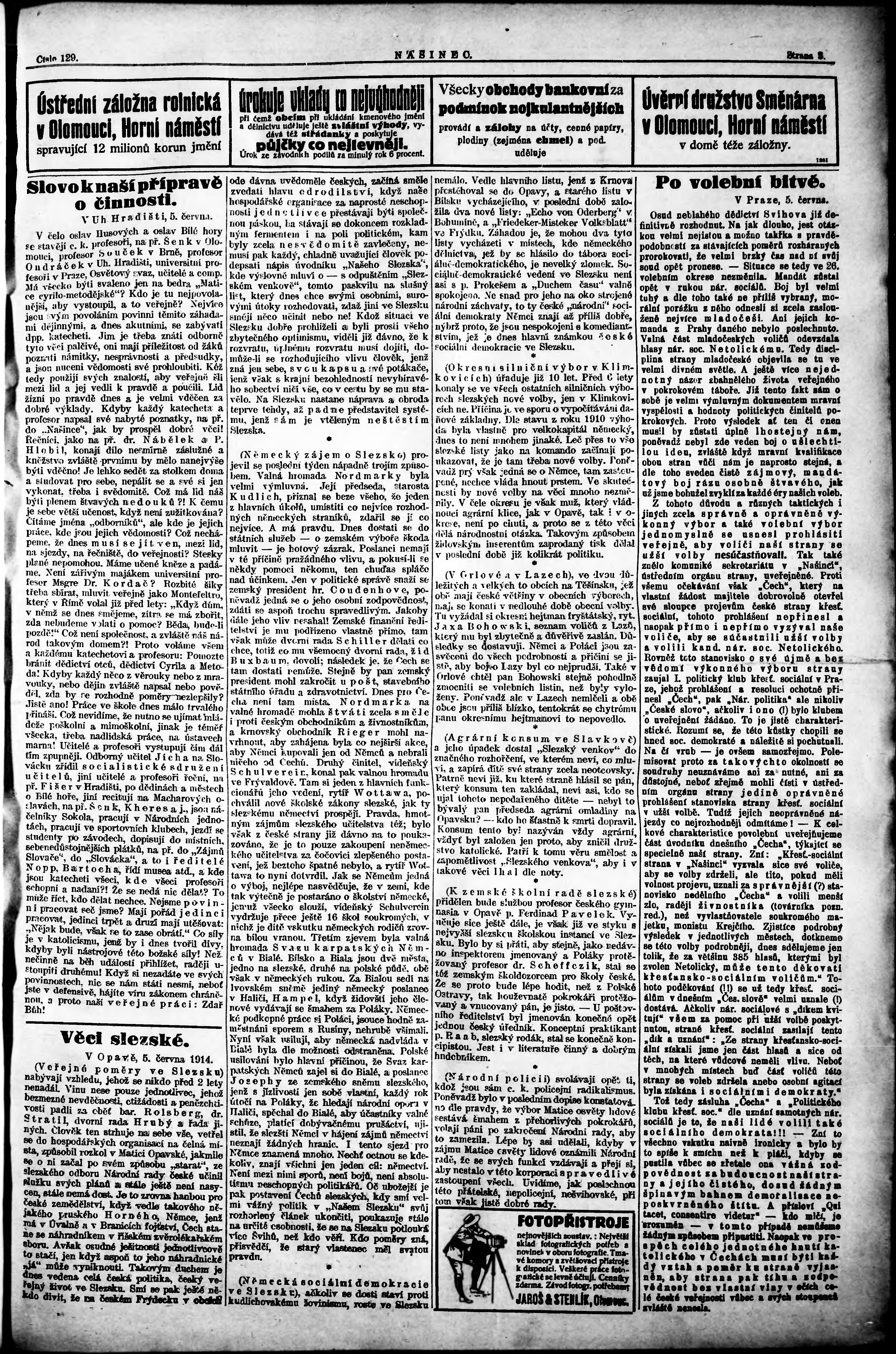 * Datum vydání výtisku: 7.6.1914 Číslo výtisku: 129