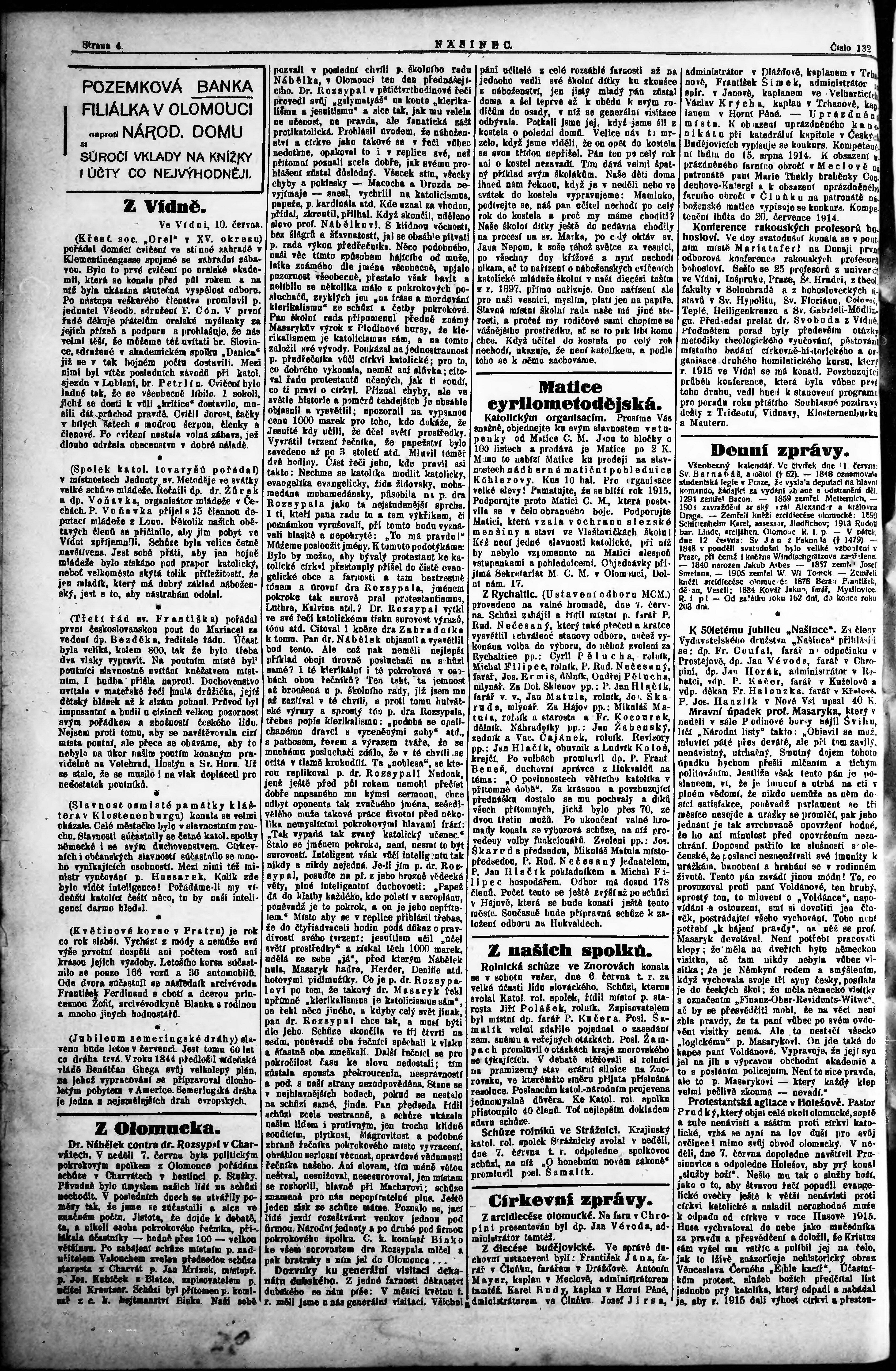 * Datum vydání výtisku: 11.6.1914 Číslo výtisku: 132