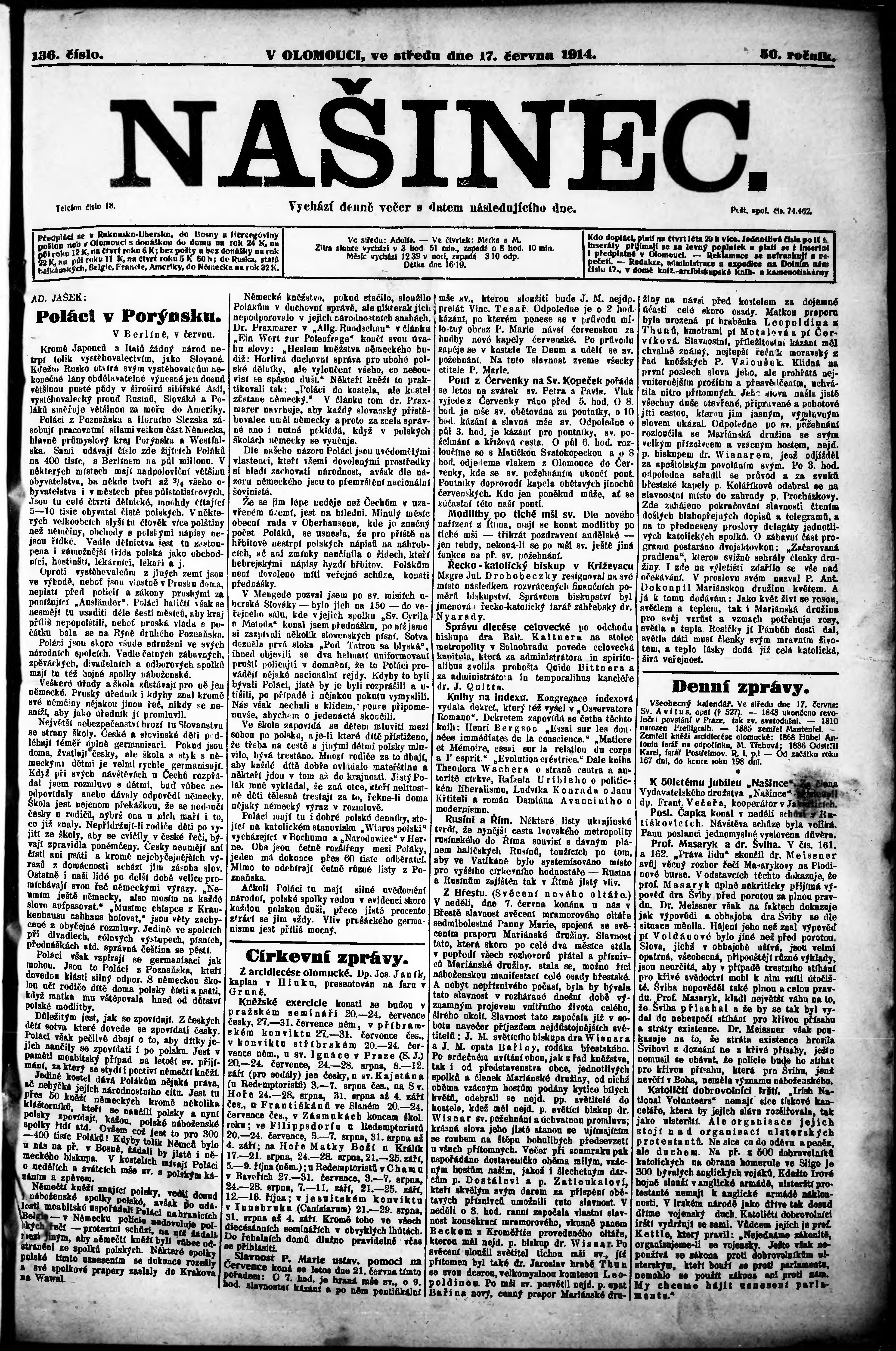 * Datum vydání výtisku: 17.6.1914 Číslo výtisku: 136
