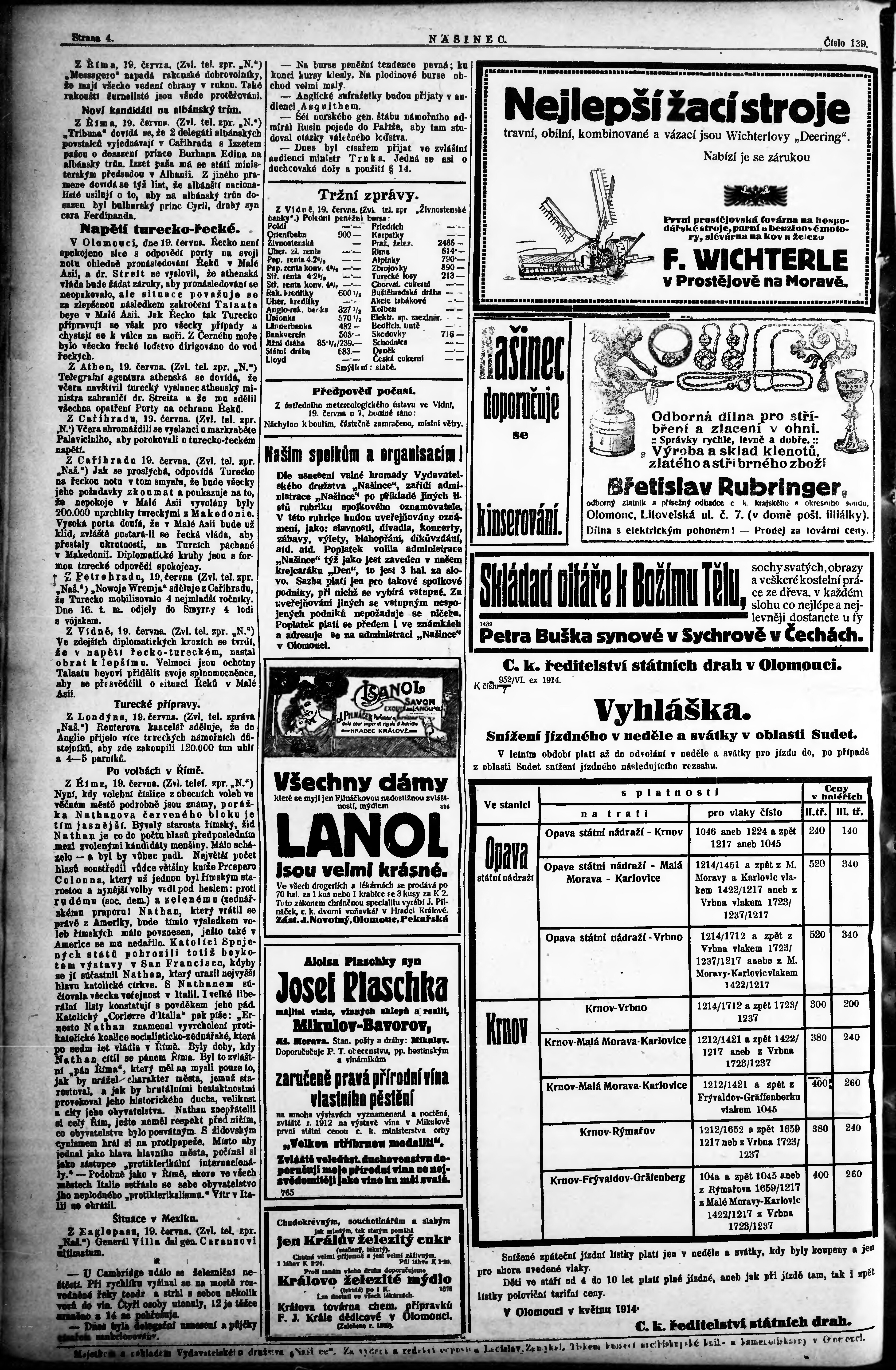 * Datum vydání výtisku: 20.6.1914 Číslo výtisku: 139