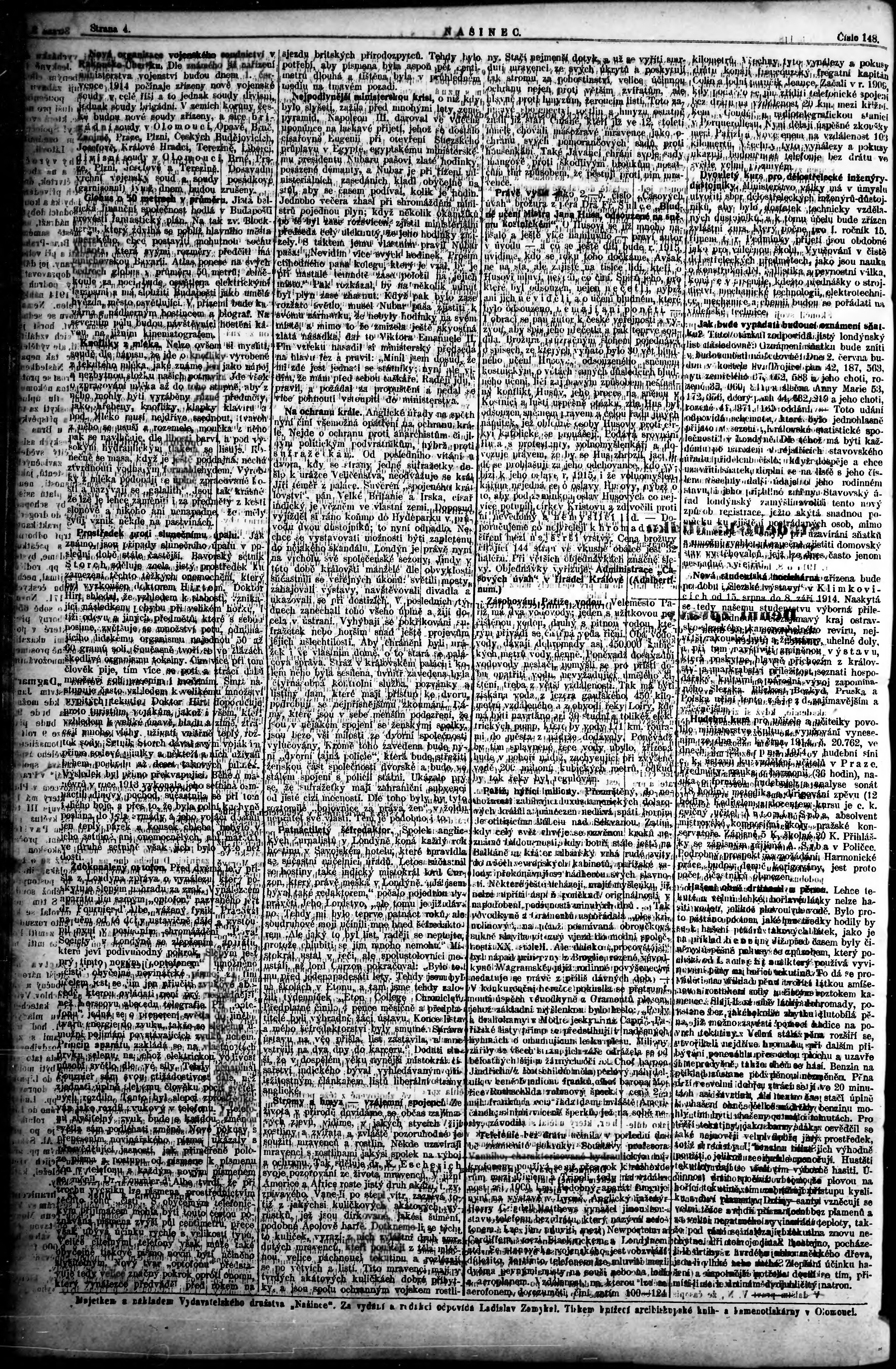 * Datum vydání výtisku: 29.6.1914 Číslo výtisku: 148 Poznámky k výtisku: zvláštní vydání;