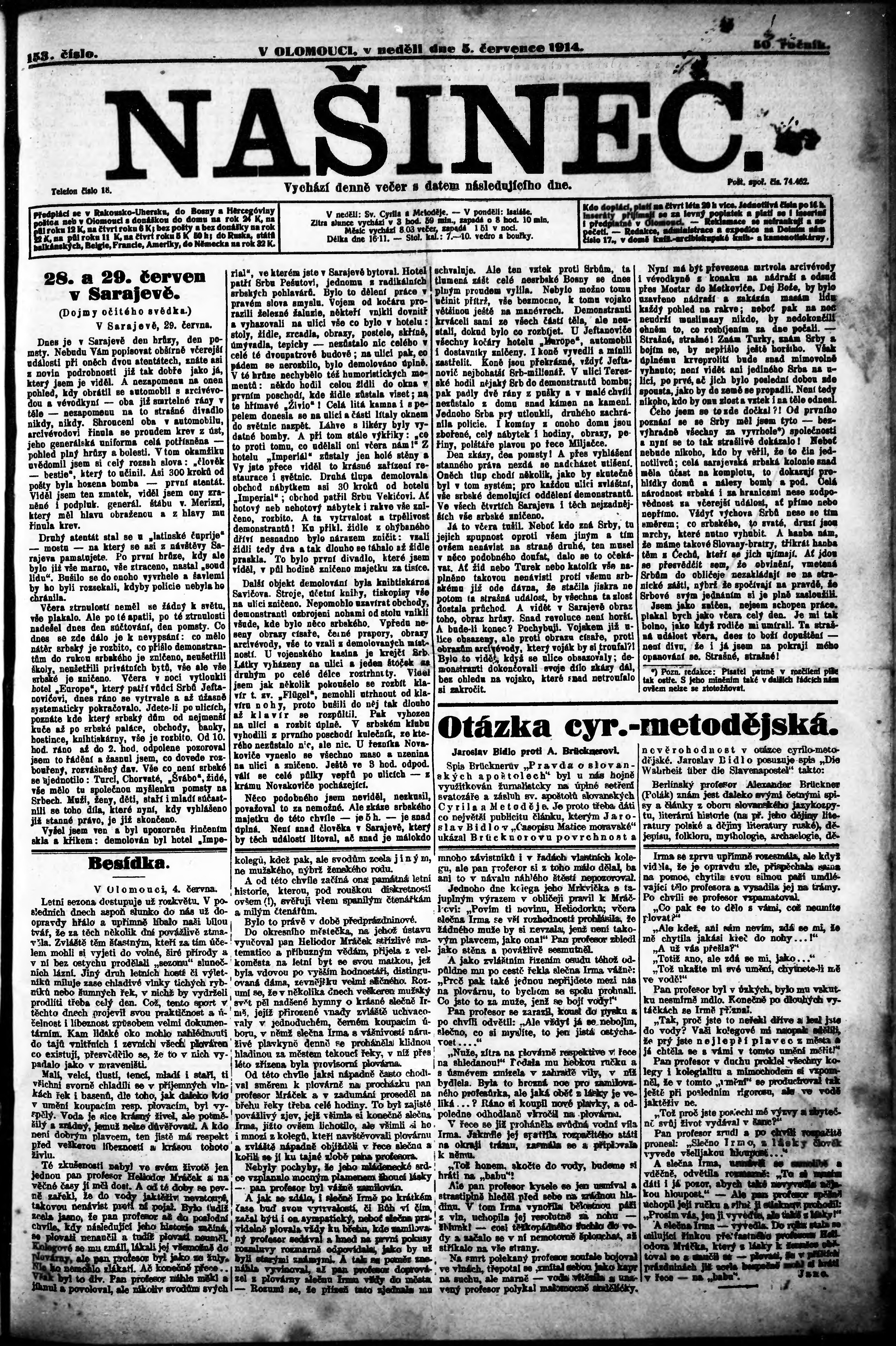 * Datum vydání výtisku: 5.7.1914 Číslo výtisku: 153