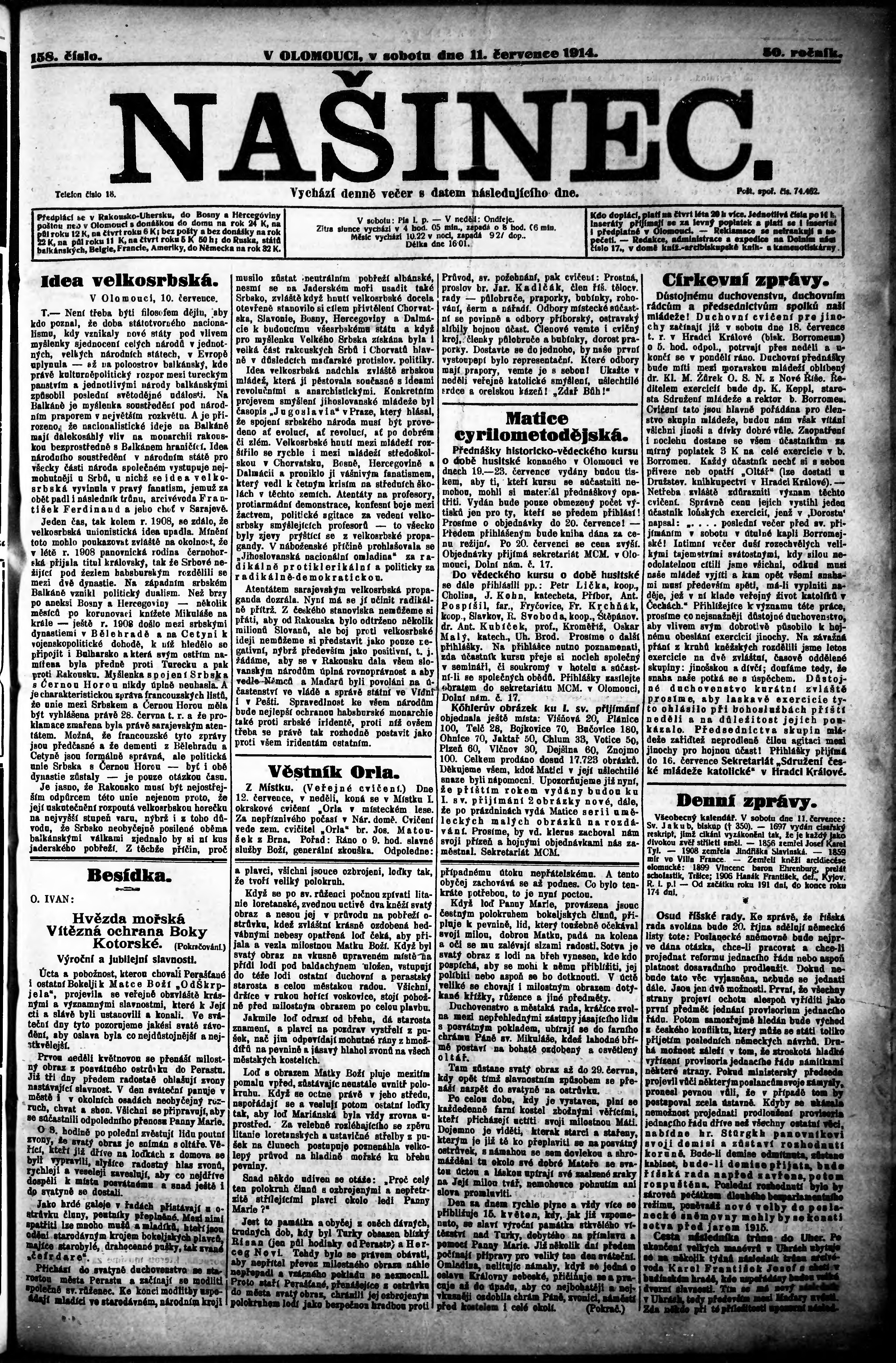 * Datum vydání výtisku: 11.7.1914 Číslo výtisku: 158